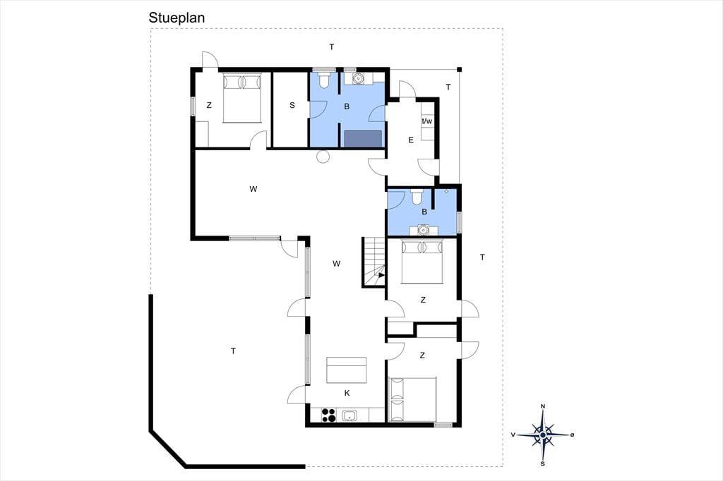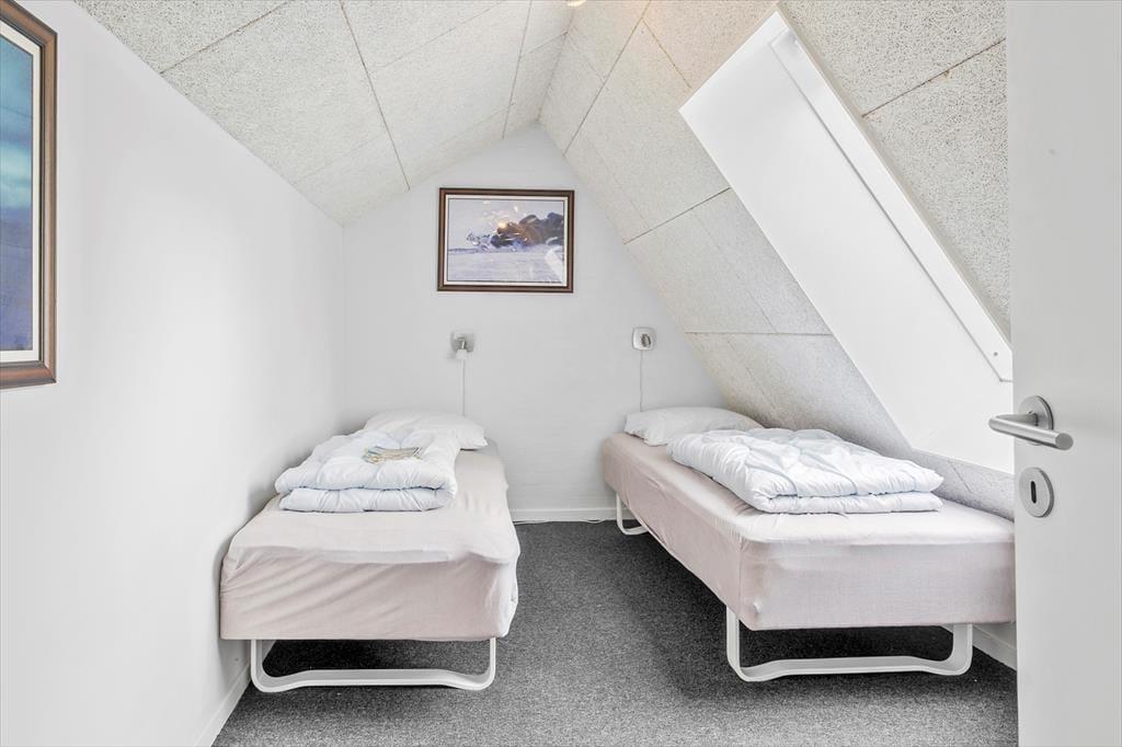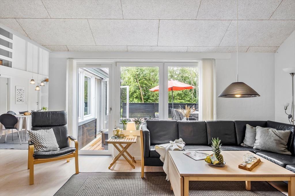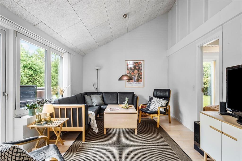Sommerhusets 158 m2 er blandt andet fordelt på to badeværelser og fem soverum, hvoraf to af sovegemakkerne er at finde på husets store hems. Dertil kommer en entré med vaskefaciliteter og et stort opholdsrum med integreret køkken, og resultatet er en særdeles rummelig feriebolig, der nemt og bekvemt kan huse op til 10 personer. Rundt omkring i huset er der mange dejlige detaljer at hæfte sig ved: For eksempel er der brændeovn i stuen, og her finder I også en fladskærm med kabel-tv og Chromecast. Det åbne køkken er veludstyret – blandt andet med opvaskemaskine – og det største badeværelse byder både på et mindre spabad og en sauna, så der er rig mulighed for at slappe af og nyde ferien.