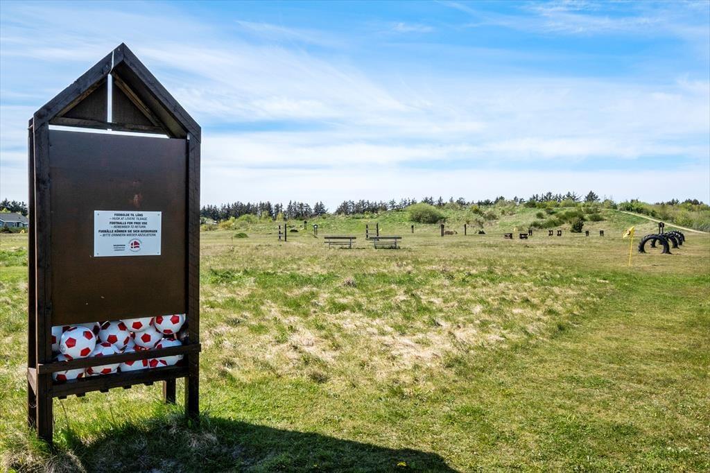 Sommerhuset ligger i et helt unikt område, hvor fællesarealet spiller en stor rolle. Her er der virkelig mulighed for en aktiv ferie for alle generationer og I kan frit og ubegrænset vælge mellem følgende aktiviteter; Fodboldgolf med 9 huller, nyanlagt minigolfbane fra 2022 samt krolfbane med krokethuller og Disc Golf. Der er mange muligheder for fodbold, både på græs og på streetbanen, hvor der også findes basketnet. Har I lyst til beachvolley er dette også en mulighed og skal formen holdes ved lige, er der flere forskellige fitnessstationer. Til de mindste gæster findes der en kæmpe sandkasse, gynger, legetårn, rutsjebane, legehus, svævebane, balancebom, edderkoppenet og vippe. Efter dagens aktiviteter kan I slappe af i grillhytten, hvor I har mulighed for at lave bål, eller I kan nyde en aftentur på områdets vandre- og cykelsti der bringer jer rundt i hele området.