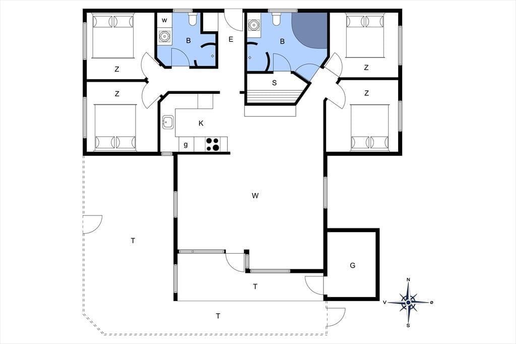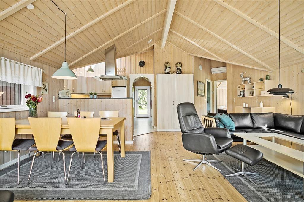 Der er sengepladser til otte personer i det 107 m2 store sommerhus, der er opført i 2008 og delvist renoveret i 2019. Husets fire værelser, der alle er med dobbeltseng, er placeret i to soveafsnit, og i begge afdelinger har I nem adgang til et badeværelse med bruser. På det største badeværelse er der tilmed spabad og sauna, så I kan forkæle jer selv med lidt wellness i løbet af ferien. Afslapningsstunderne kan også foregå i den hyggelige stue, der byder på en komfortabel sofaafdeling med brændeovn og fladskærms-tv. Spisebordet er praktisk placeret tæt på det veludstyrede køkken, hvor I kan diske op med lækre måltider både morgen, middag og aften.