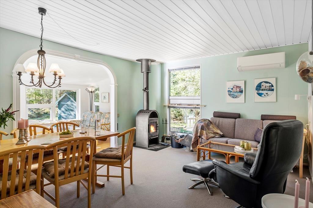 Indenfor bliver du mødt af en hyggelig og funktionel indretning, der emmer af dansk sommerhuscharme. Huset er lyst og velholdt, og stuen og køkkenet ligger i åben forbindelse, så det er let at samles om madlavning, måltider og hyggelige stunder. Her er der plads til både afslapning og samvær med familie og venner. De to soveværelser er indrettet med fokus på komfort, så du kan vågne veludhvilet til lyden af fuglesang. Badeværelset er praktisk og funktionelt, og med den enkle indretning er der skabt en ramme, der gør det let at slappe af og nyde ferien.