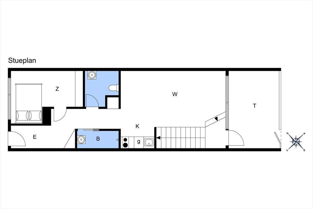 Lejligheden er beliggende i 'Tranum Klitgaard' og fremstår i flot og velholdt stand. Der er en lys og indbydende stemning i boligen, som er indrettet i en charmerende nordisk stil med smukke gulvfliser og hvidmalede murstensvægge. I ferieboligens stueplan er der et sammenhængende opholdsmiljø med stue i åben forbindelse med et nyt og veludstyret køkken med bl.a. opvaskemaskine. Her kan man lave mad og samtidigt være med i snakken ved spisebordet. Her er desuden et soveværelse med dobbeltseng samt et badeværelse, mens der på førstesalen er yderligere et rummeligt soveværelse.