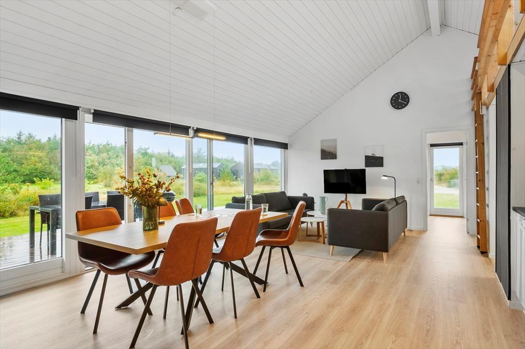 Dette flotte sommerhus på Kronvildtvej 136 byder på en afslappende atmosfære og en stilren indretning, der giver de perfekte rammer for en ferie i ro og balance. Her kan du læne dig tilbage og nyde fridagene i smukke omgivelser, hvor naturen og roen omkring Tranum Ferieby skaber den ideelle ramme for afslapning og samvær med familien.