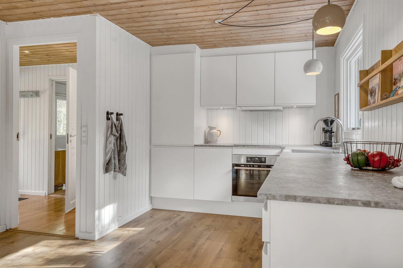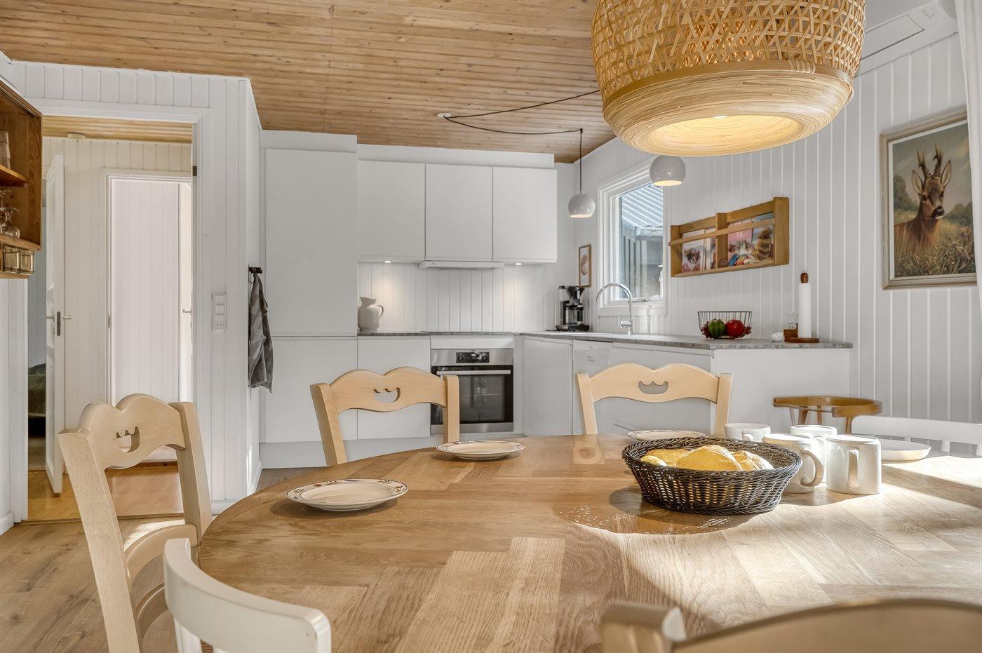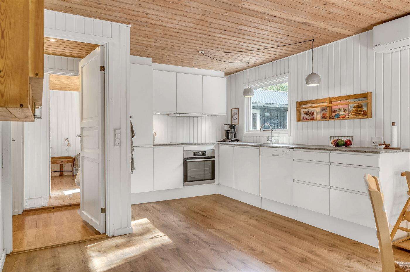 Køkkenet er udstyret med 1 køleskab. Der er 4 induktionskogeplader, varmluftovn samt opvaskemaskine.