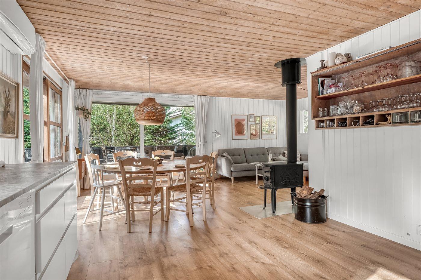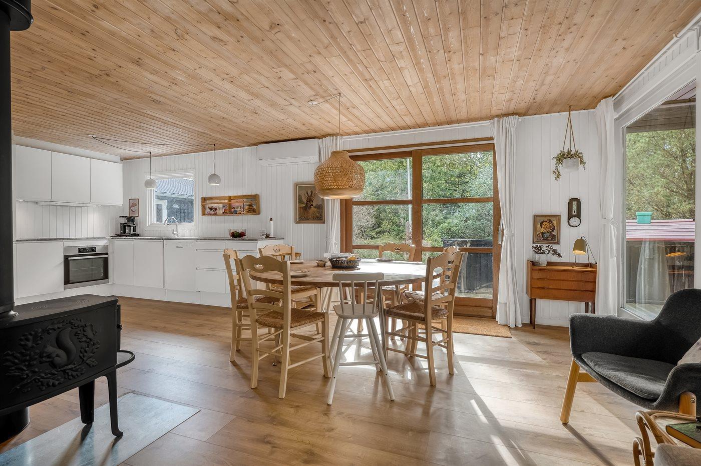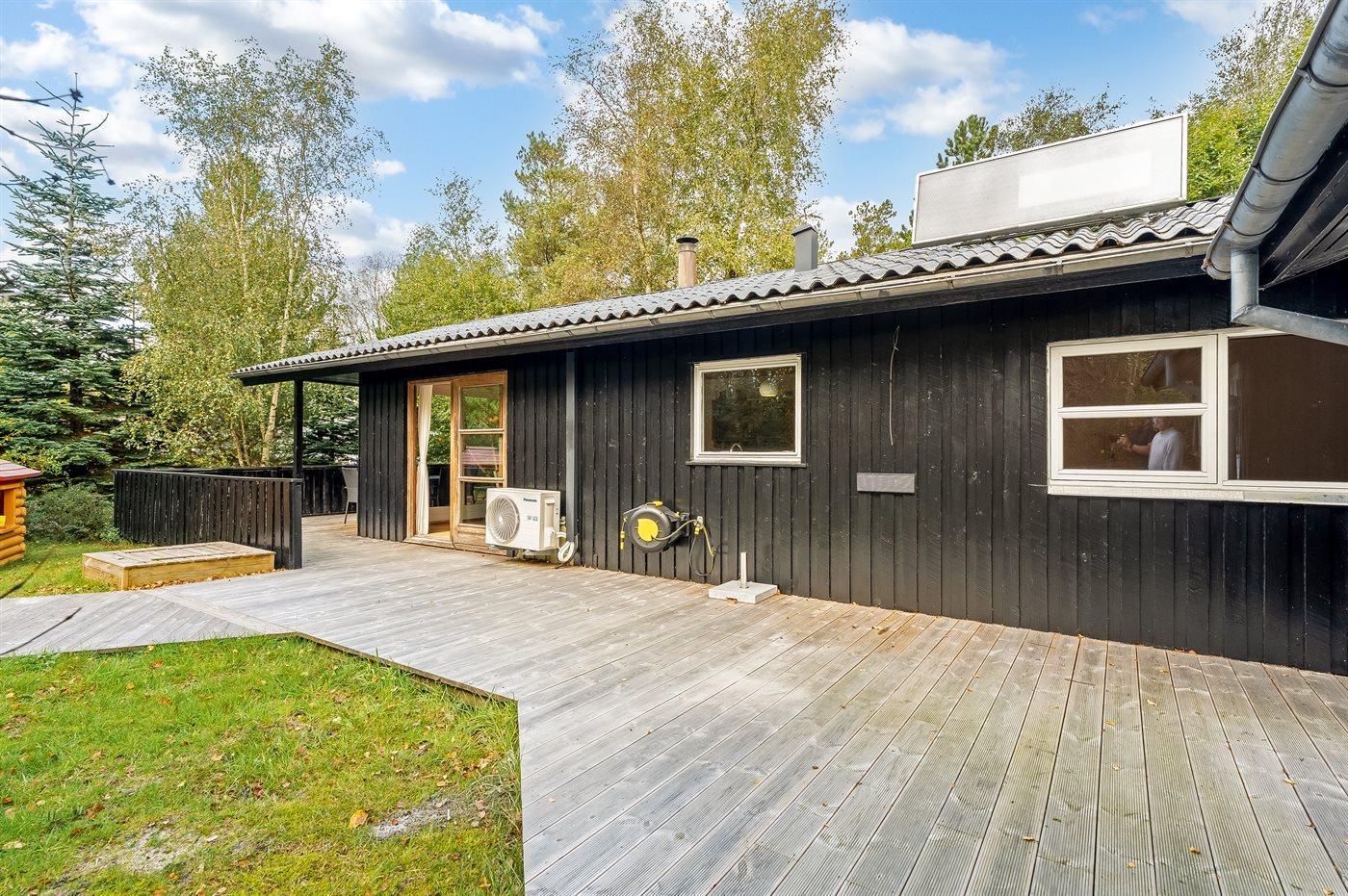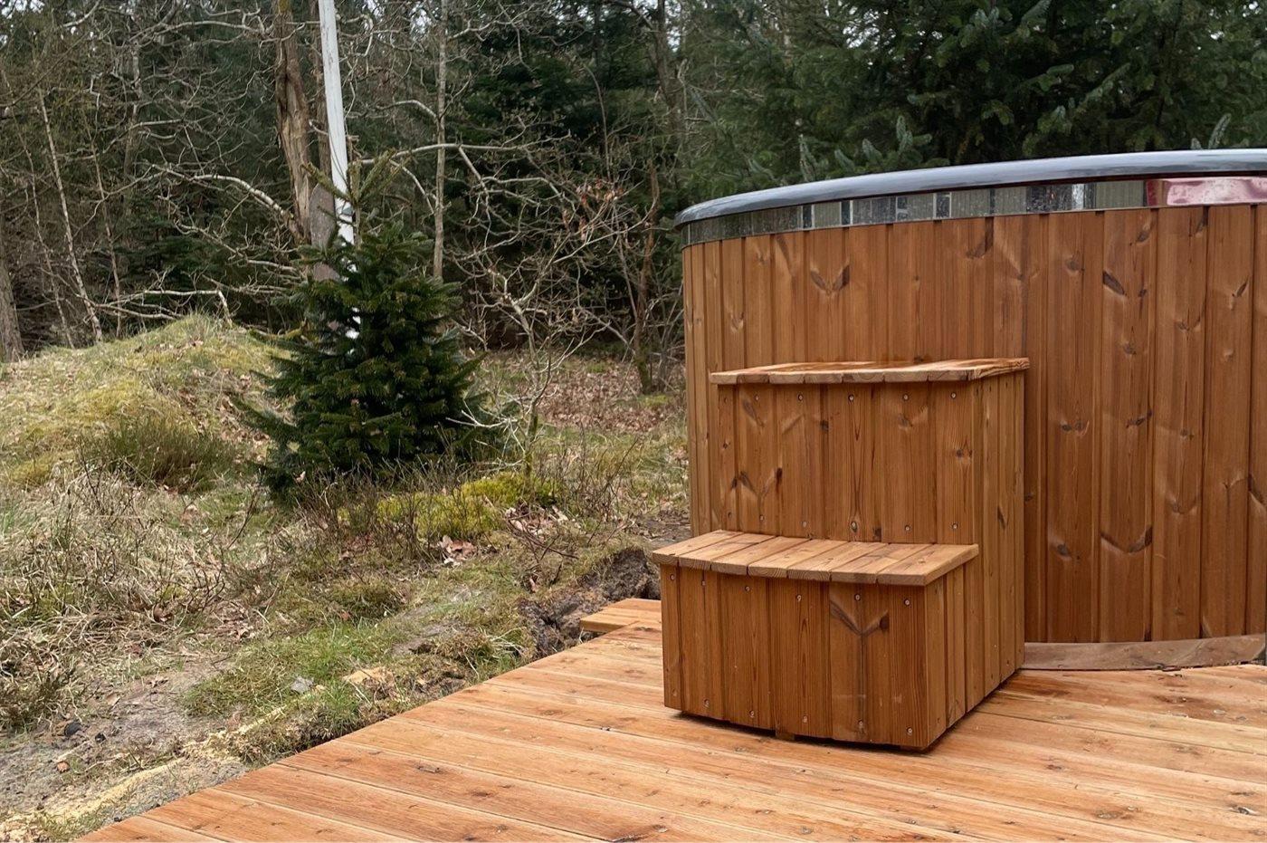 Udenfor finder I både en ny sydvendt terrasse og en hyggelig, overdækket terrasse på 8 m² med terrassevarmer – perfekt til kølige aftener. Og som prikken over i’et kan I slappe af i det udendørs vildmarksbad under åben himmel efter en dag fyldt med oplevelser i naturen.