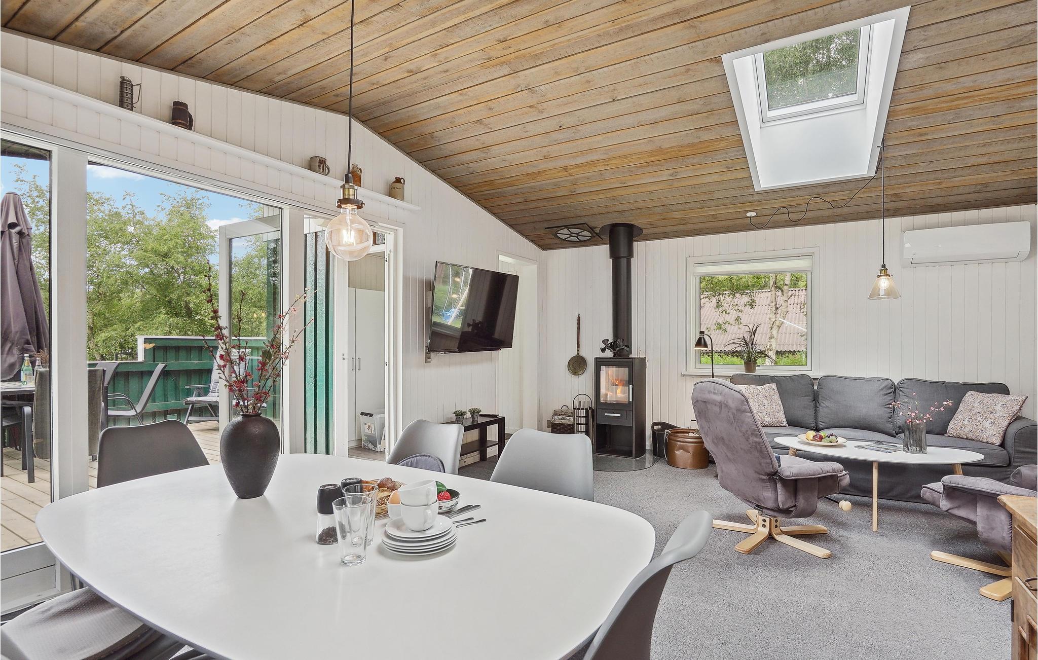 Glæd jer til at tilbringe sommerdagene på terrassen, hvor I kan nyde jeres feriemåltider, solbade, fordybe jer i spændende ferielæsning og holde hyggelige grillaftener. Har I børn, så vil de uden tvivl elske naturgrunden, hvor de kan løbe rundt og lege, når de ikke hopper på trampolin, gynger eller bygger sandslotte i sandkassen. Op til to kæledyr er også velkomne her, så hele familien kan holde ferie sammen. Her er der virkelig god plads til leg og aktiviteter for hele familien, uanset om det er dåseskjul, tag-fat, kaste med frisbee eller noget helt fjerde. En bålplads gør det også muligt at bage snobrød eller sidde og lytte til de knitrende flammer om aftenen, når mørket falder på. Efter en aktiv feriedag indbyder det store fladskærms-TV med Chromecast i stuen til en hyggelig filmaften med slik eller popcorn.