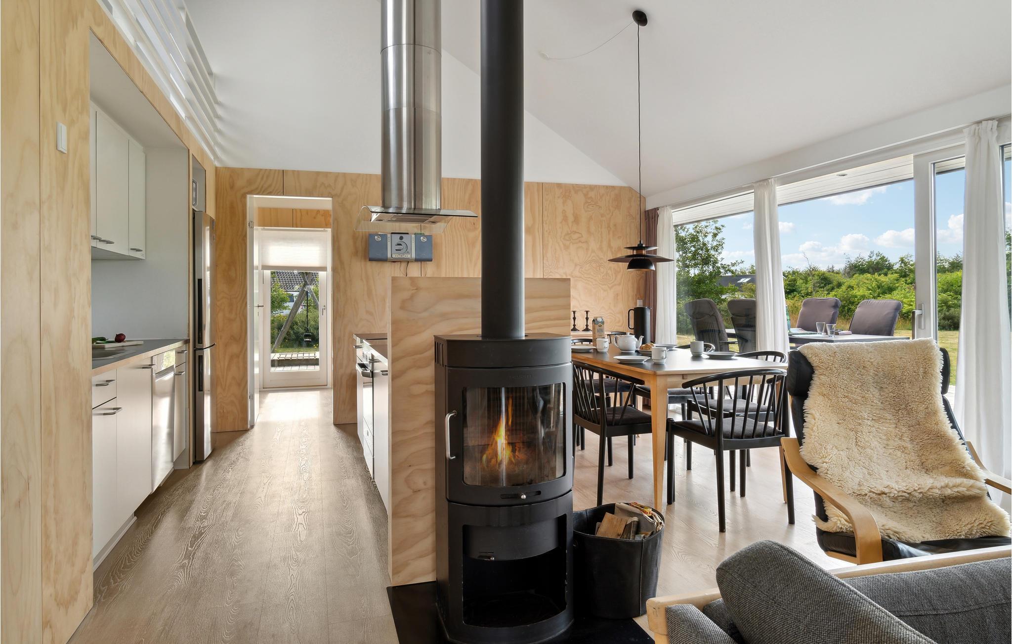 Tag familien eller en vennegruppe under armen og med på ferien til det nordjyske, hvor I kan glæde jer til at bo i denne dejlige feriebolig. Huset er lyst og godt indrettet, og møblerne og udstyreet er smagfuldt sammensat. Stue og køkken er kombineret og udgør husets centrale rum, hvor store vinduespartier giver et dejligt lysindfald. I sofaen kan I læse en god bog til lyden af brændovnens gnitren, som også udgør et skønt soundtrack til en aften med bræt- eller kortspil.