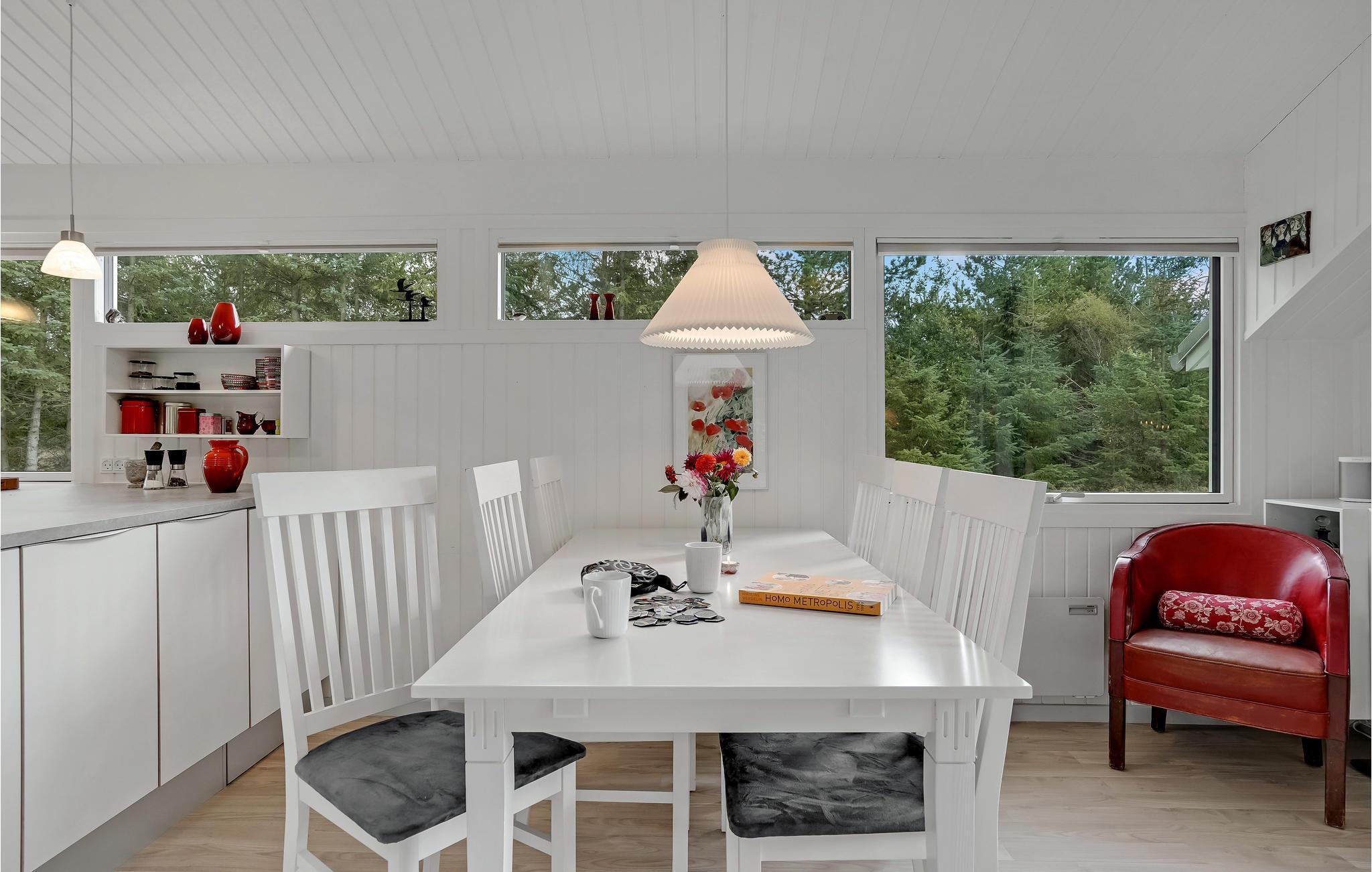 I Tranum ved Jammerbugten ligger dette charmerende, blå hus, hvor I kan nyde nogle vidunderlige feriedage. Huset ligger på en stor naturgrund, der grænser op til et stykke skov. Indretningen er lys, varm og personlig med lækre, moderne faciliteter. Tænd op i brændeovnen på de kølige dage og kig ud på de grønne omgivelser, mens I samles om brætspil og andre hyggelige aktiviteter indendørs.