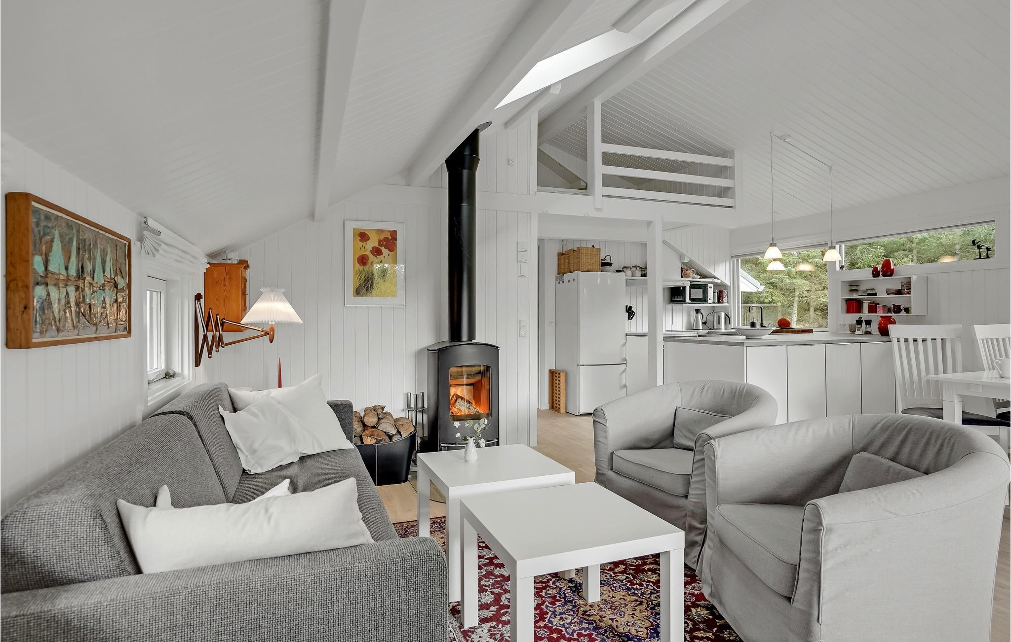 Indbydende feriehus med brændeovn og skøn naturgrund i rolige omgivelser.