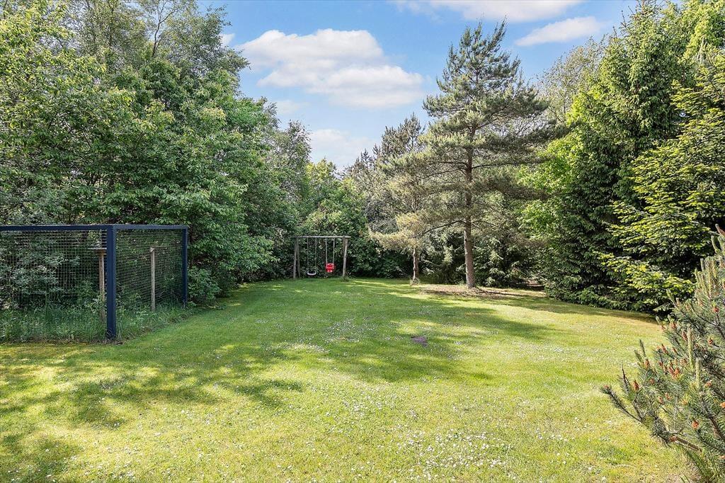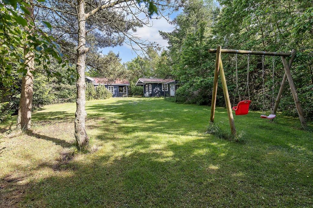 I forlængelse af sommerhuset er der to overdækkede terrasseområder, men hvis du foretrækker at sidde helt ude under åben himmel, er der masser af plads til solbadning, grill og tilbagelænet driverliv på det flisebelagte terrasseområde. En dejlig græsplæne breder sig desuden i læ af grundens randbeplantning, og her har du masser af plads til at lege og spille bold med familien. Børnene kan for øvrigt hygge sig i sandkassen og på gyngerne, så de vil sikkert også blive glade for at opholde sig her i den grønne og ugenerede oase.