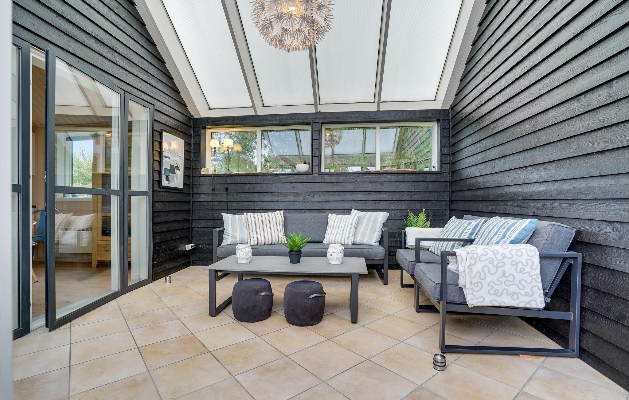 Hyggeligt feriehus i Trend med spa, sauna, opvarmet havestue og stor lukket terrasse til afslapning året rundt.