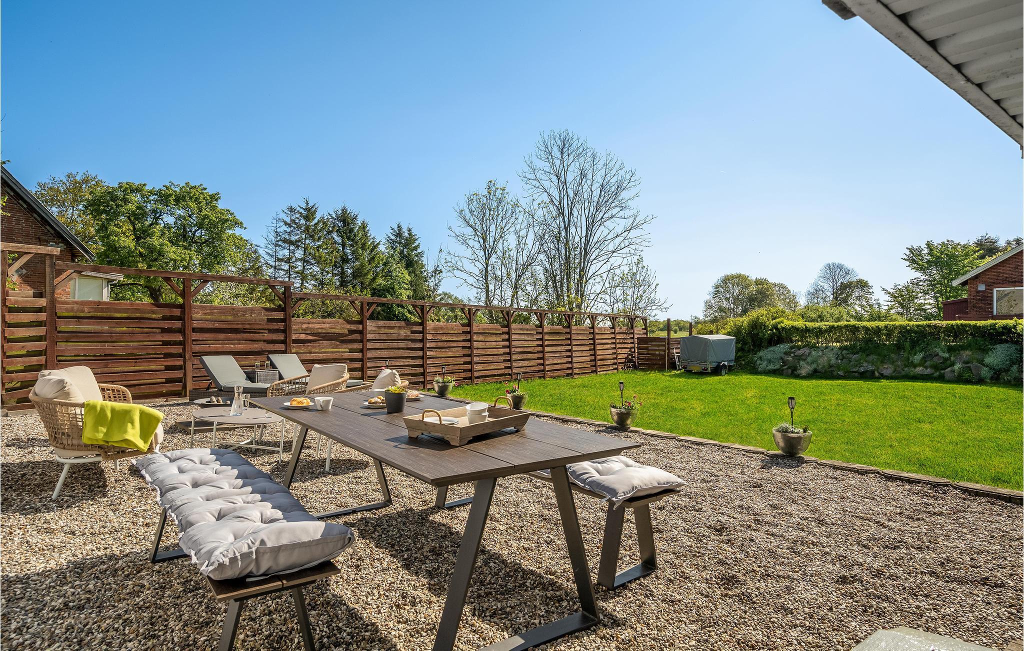 Elegant ferielejlighed nær Bjørnsholm Bugt med moderne faciliteter og hyggelig terrasse til afslapning.