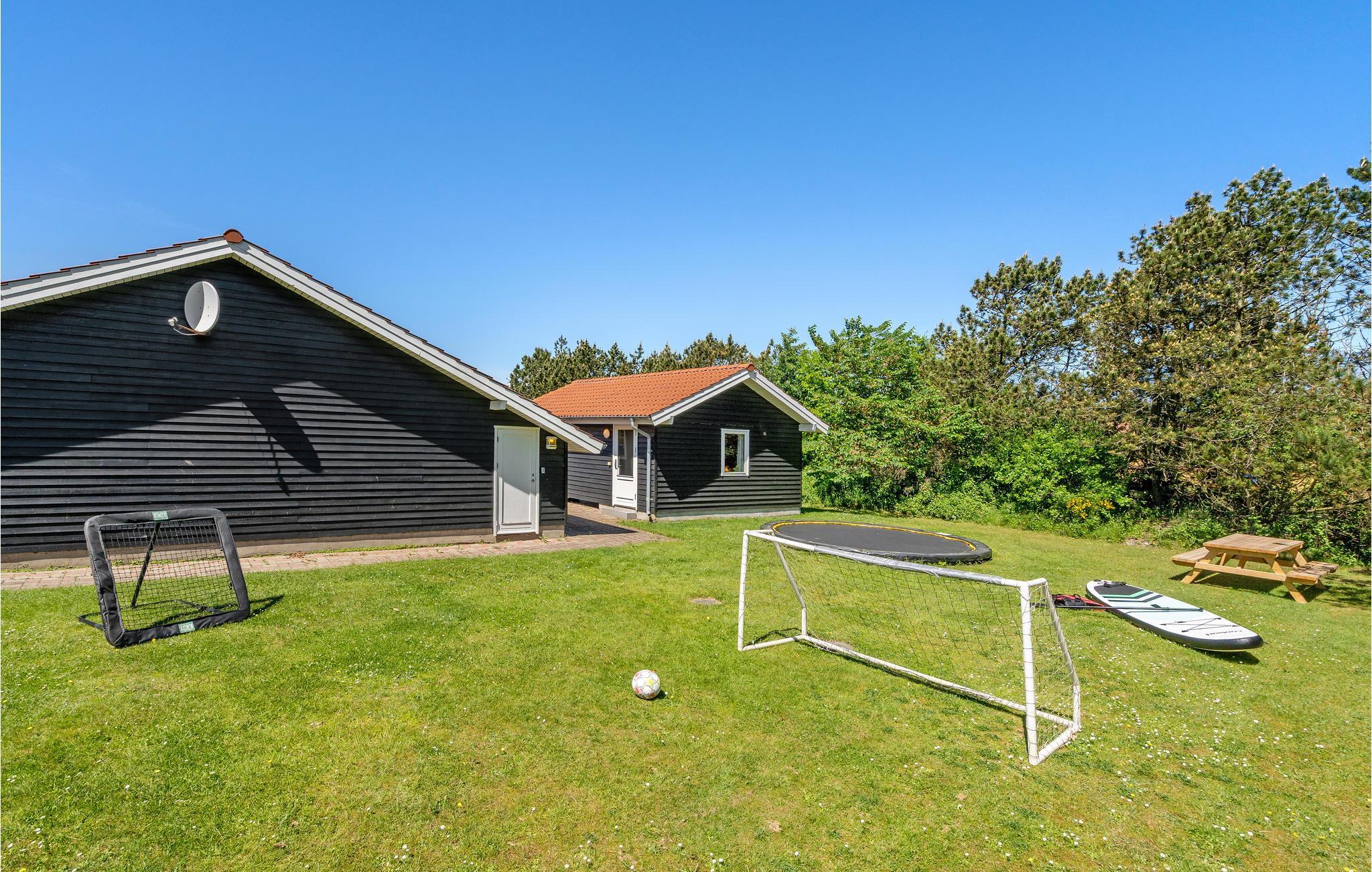 Hyggeligt feriehus i Trend med swimmingpool, sauna, spabad og stor naturgrund til afslapning og leg.