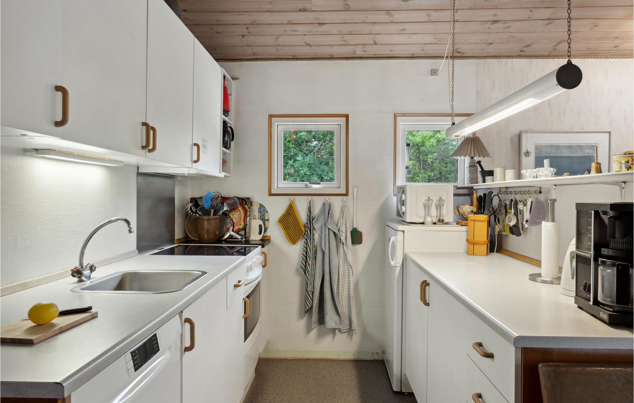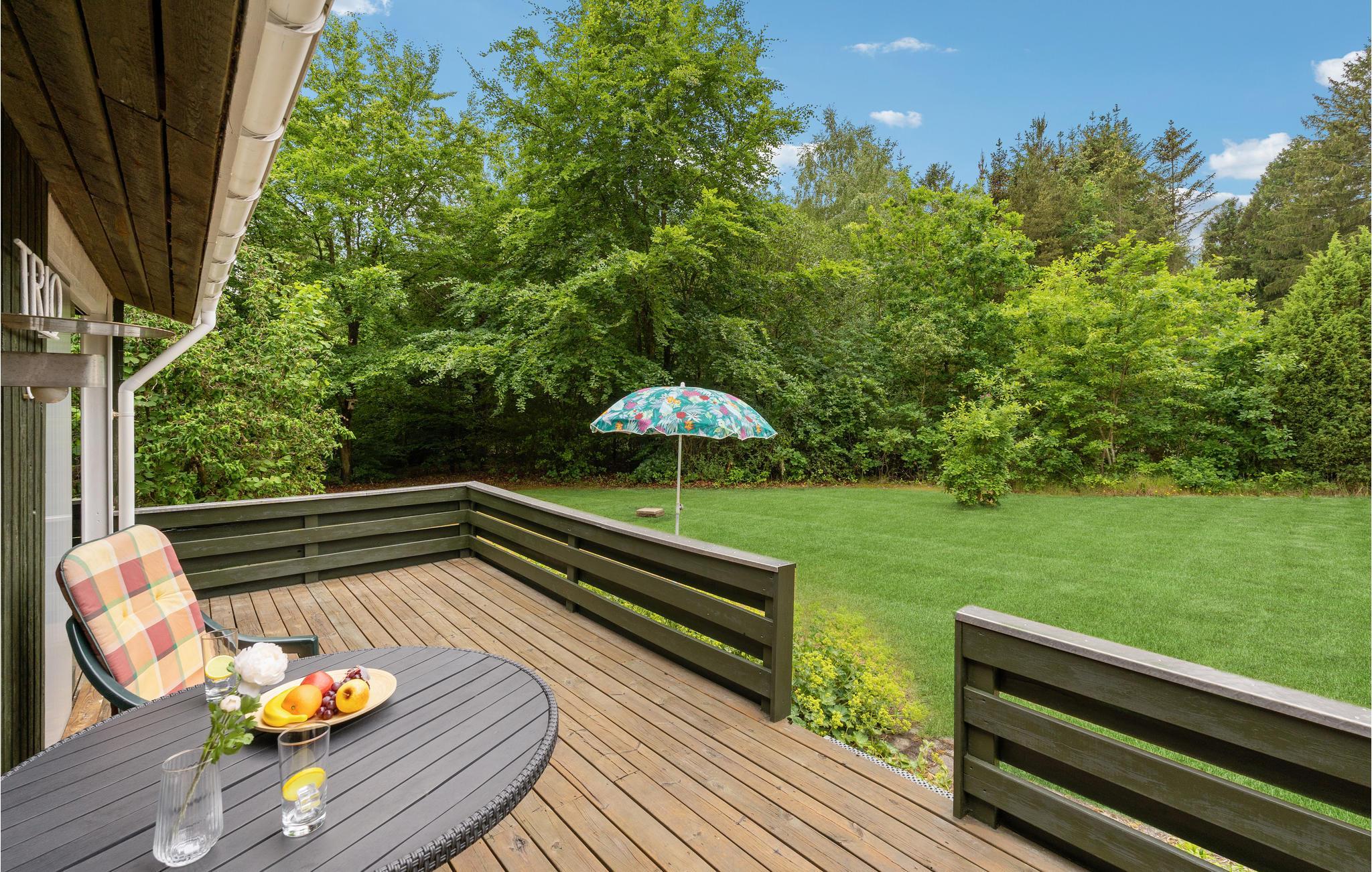 På en åben grund omgivet af træer giver dette hus med sin enkle komfort jer alt, hvad I behøver for at føle jer godt tilpas. Det hyggelige opholdsrum skaber en god ramme, hvor I kan glemme hverdagens stress og i stedet slappe af til en dejlig udsigt over det grønne gennem de store vinduer. Spisebordet indbyder til sjove brætspilsstunder og dejlige familiemåltider. Nyd ferieaftenerne, mens I sludrer til sent ud på natten ved brændeovnen. Slik sol i haven og spil alletiders fodboldkamp på græsplænen. En dejlig grillaften på terrassen er altid en fornøjelse for hele familien. Den kendte natursti, Trækstien, og Gudenåen befinder sig lige i nærheden af huset og inviterer til vandreture og spændende lystfiskeri.