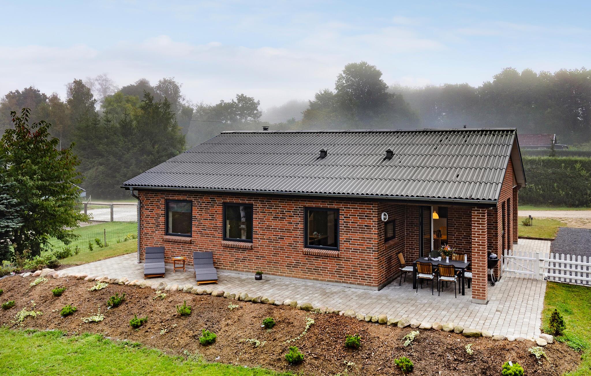 Komfortabelt feriehus nær Gudenåen med overdækket terrasse og indhegnet have.