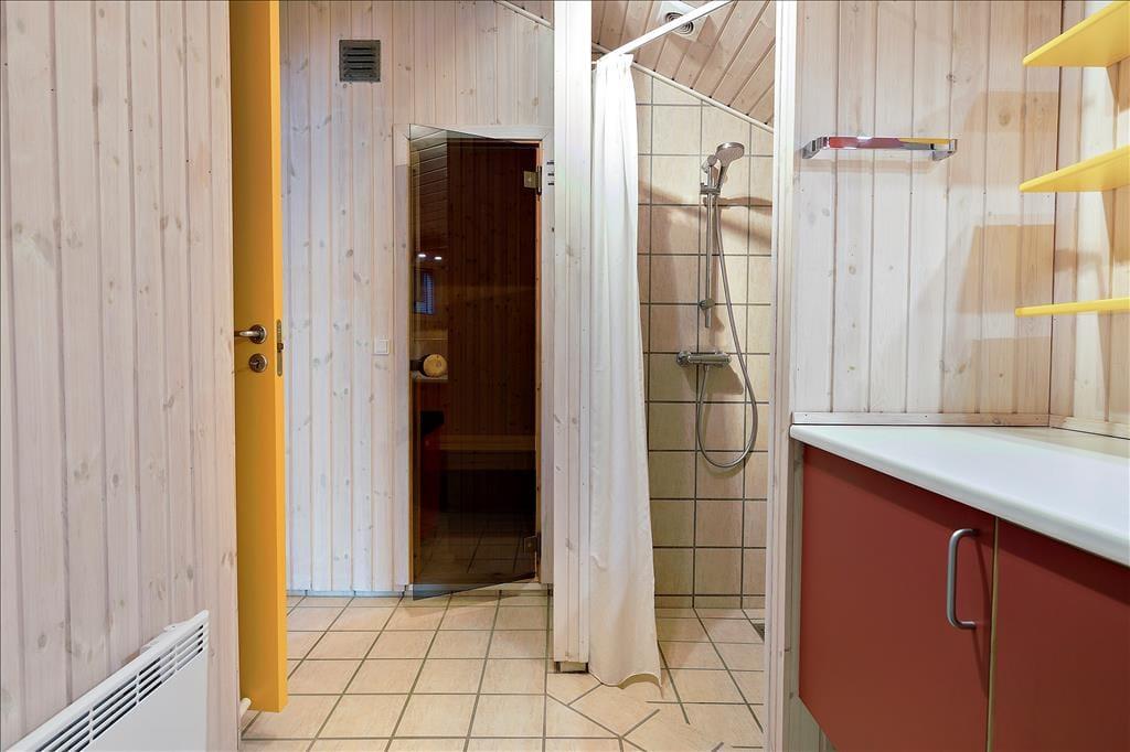 Dette charmerende sommerhus er designet til at imødekomme behovene hos op til seks personer, og det byder på en atmosfære af ro og harmoni, der straks sænker tempoet og lader sindet finde fred. En brændeovn spreder varme og hygge gennem huset, som skaber en atmosfære af hjemlig komfort, der indbyder til lange aftener foran flammerne med en god bog eller en hyggelig samtale. Lyden af knitrende brænde og varmen fra ilden giver en ekstra dimension af hygge til dine ophold i sommerhuset. Husets badeværelse er mere end bare et sted at vaske sig. Det er en oase af velvære, udstyret med en indbydende sauna, hvor du kan lade hverdagens stress og bekymringer forsvinde i en sky af varme og damp.