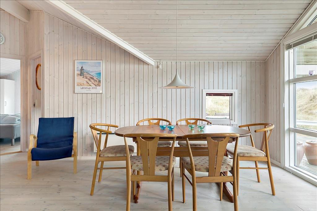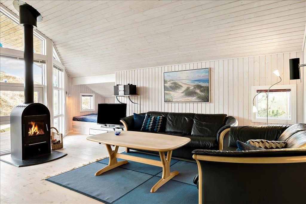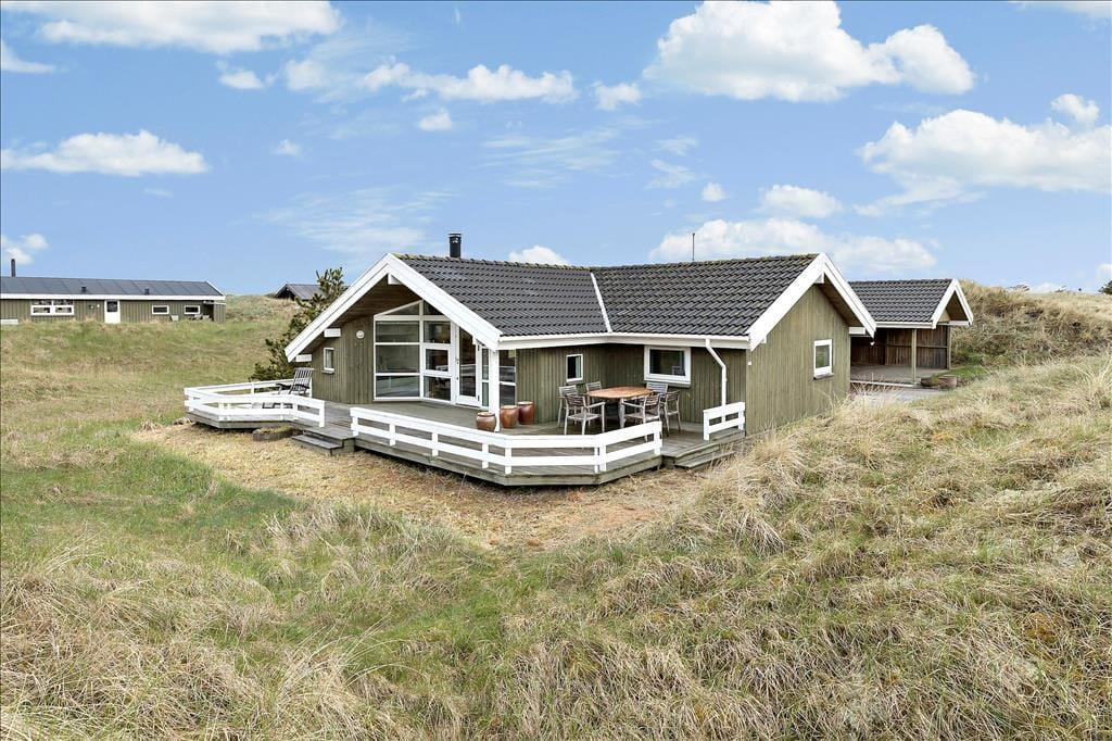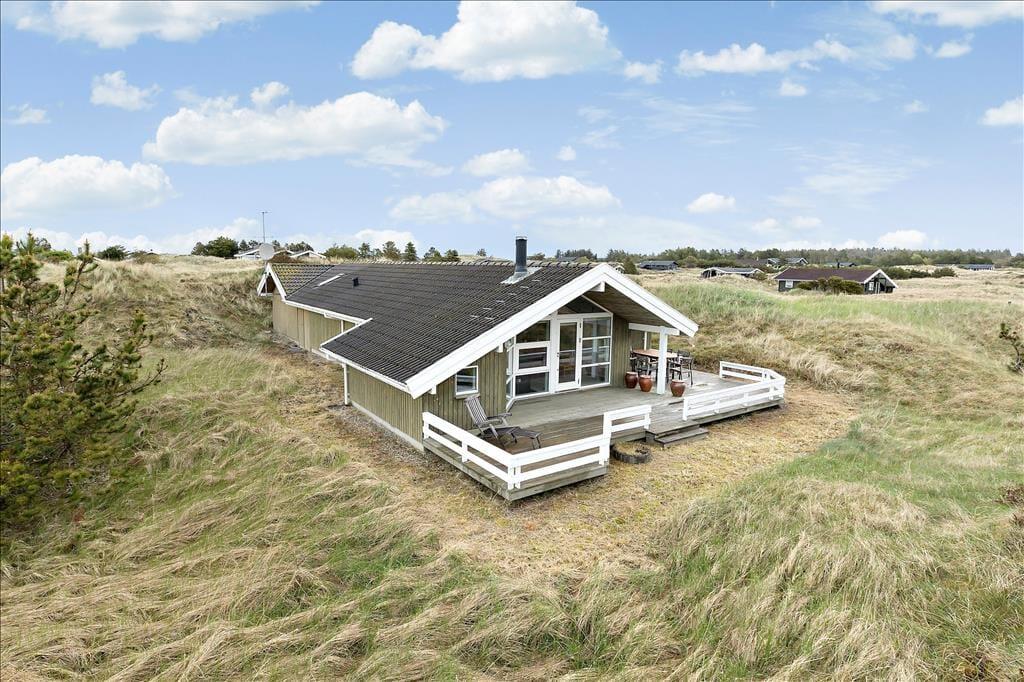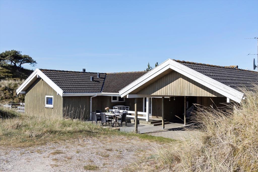 En stor terrasse strækker sig ud fra sommerhuset, inviterende til udendørs spisning, solbadning eller en eftermiddagslur i skyggen. Delvist overdækket, giver den mulighed for at nyde de skiftende vejrforhold uden at miste fornemmelsen af beskyttelse og intimitet. Beliggende på en usædvanligt smuk klitgrund, er vores sommerhus en del af en naturlig scene, hvor landskabet skifter farve og tekstur med årstidernes skiften. I vores sommerhus er fred og afslapning mere end bare ord - de er en del af hverdagen, en tilstand af sindet og en invitation til at opleve livet i sin reneste og mest beroligende form.