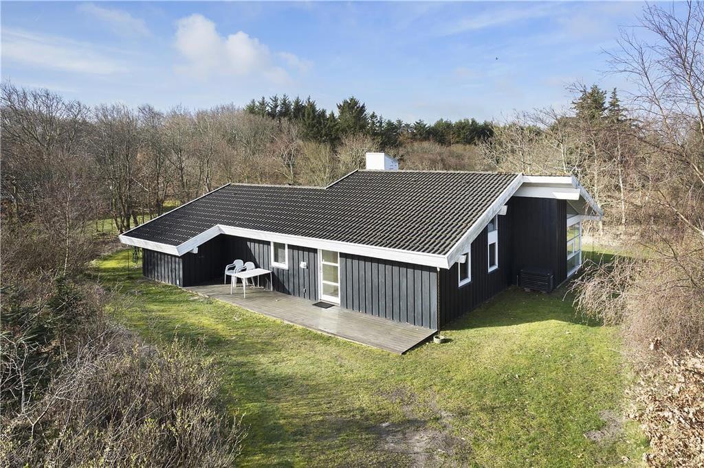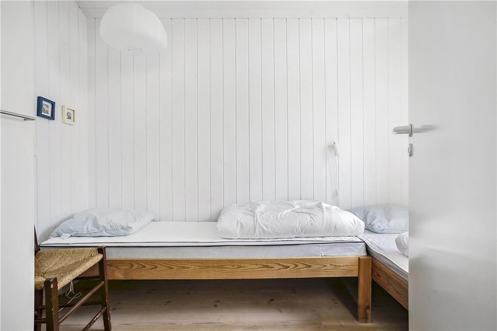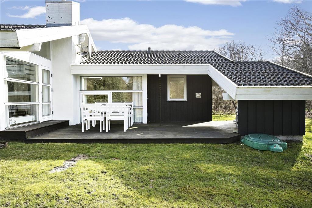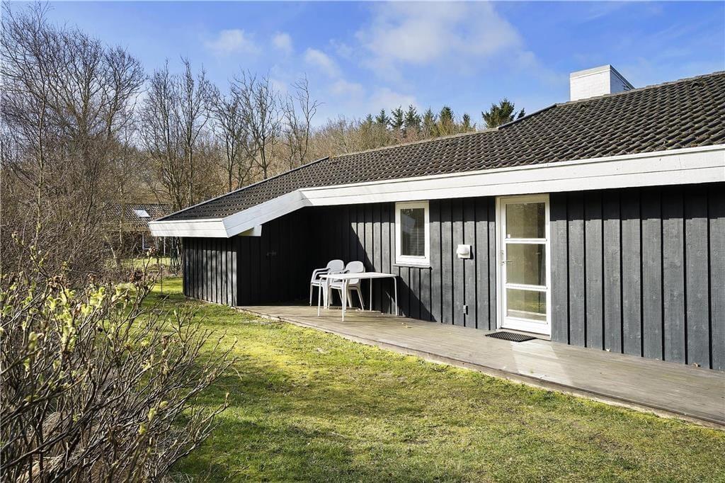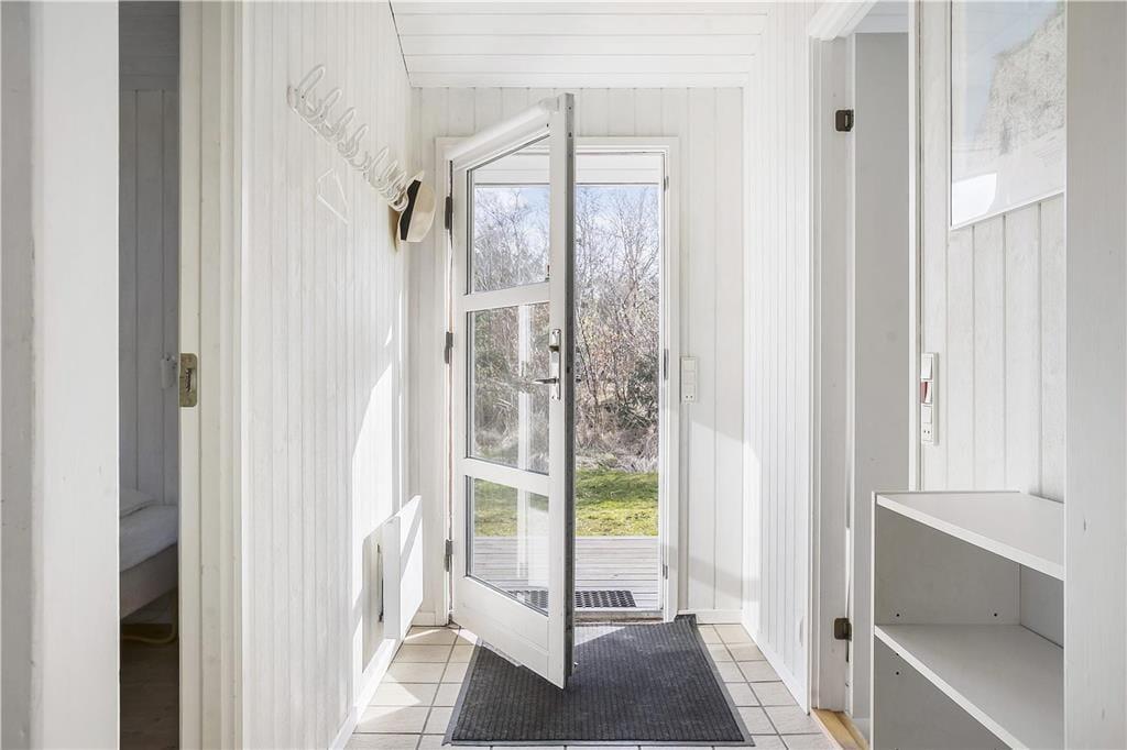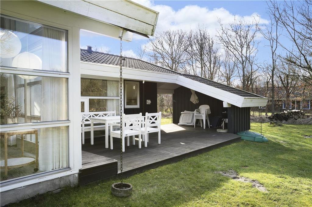Udenfor inviterer terrassen til afslapning i solen, hvor du kan nyde kaffen om morgenen eller samle familien til grillmad under åben himmel. Sommerhuset ligger på en stor naturgrund omgivet af grønne træer, der giver en skøn følelse af privatliv og ro. Med god plads til leg og aktiviteter kan børnene boltre sig på græsplænen, mens de voksne nyder den fredelige atmosfære. Og når lysten melder sig, er stranden blot en kort gåtur væk – perfekt til en dukkert eller en afslappende stund med fødderne i sandet.