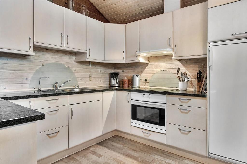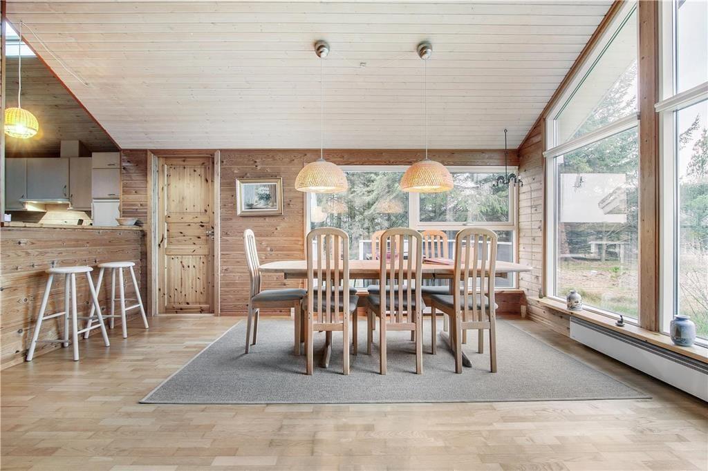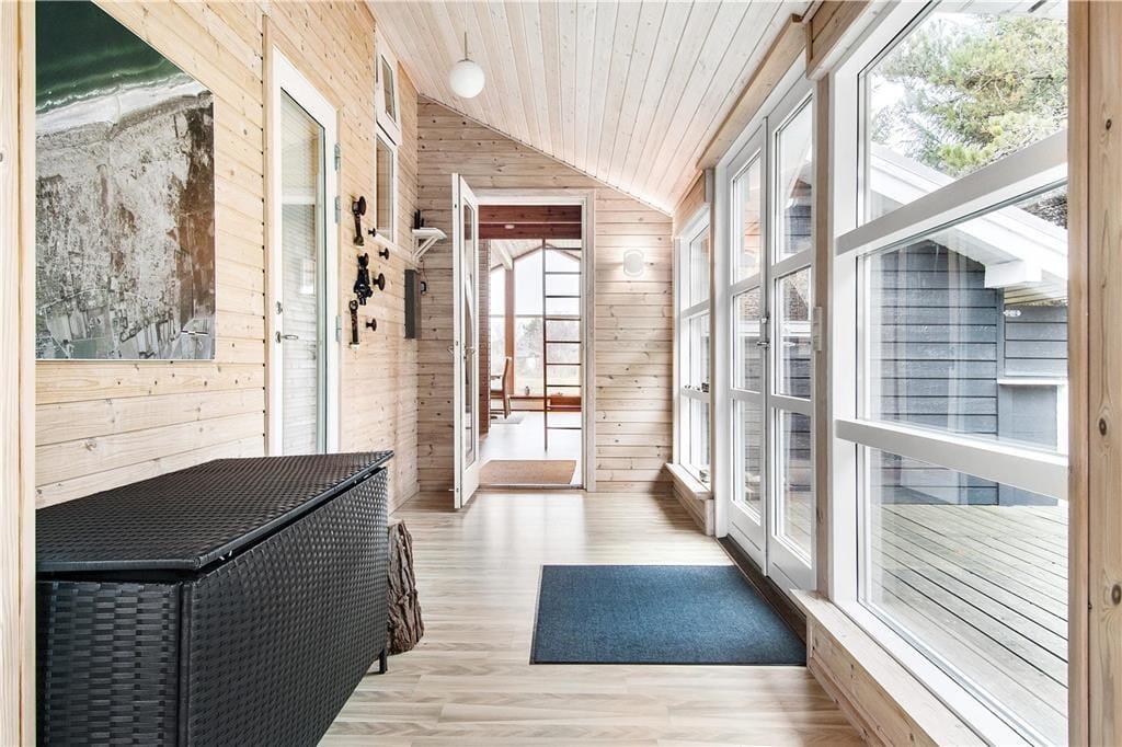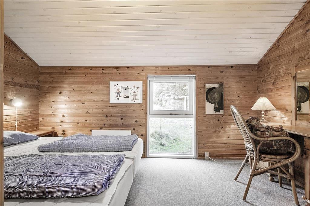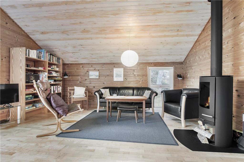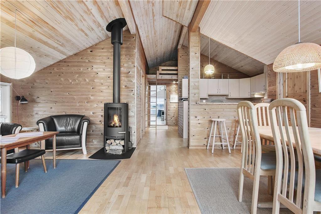 Indenfor i sommerhuset bliver du mødt af en lys og varm atmosfære, der straks giver en følelse af hjemlig hygge. Stuen er rummelig og indrettet med komfortable møbler, hvor hele familien kan samles omkring brændeovnen og nyde hinandens selskab. Den åbne planløsning mellem stue og køkken gør det nemt at være sammen om madlavning og måltider. I den hyggelige udestue kan du nyde roen og udsigten til haven – perfekt til en stille stund med en bog eller en kop kaffe, uanset om solen skinner eller regnen trommer mod taget. Soveværelserne byder på fred og komfort, så du kan vågne udhvilet og klar til nye eventyr i området.