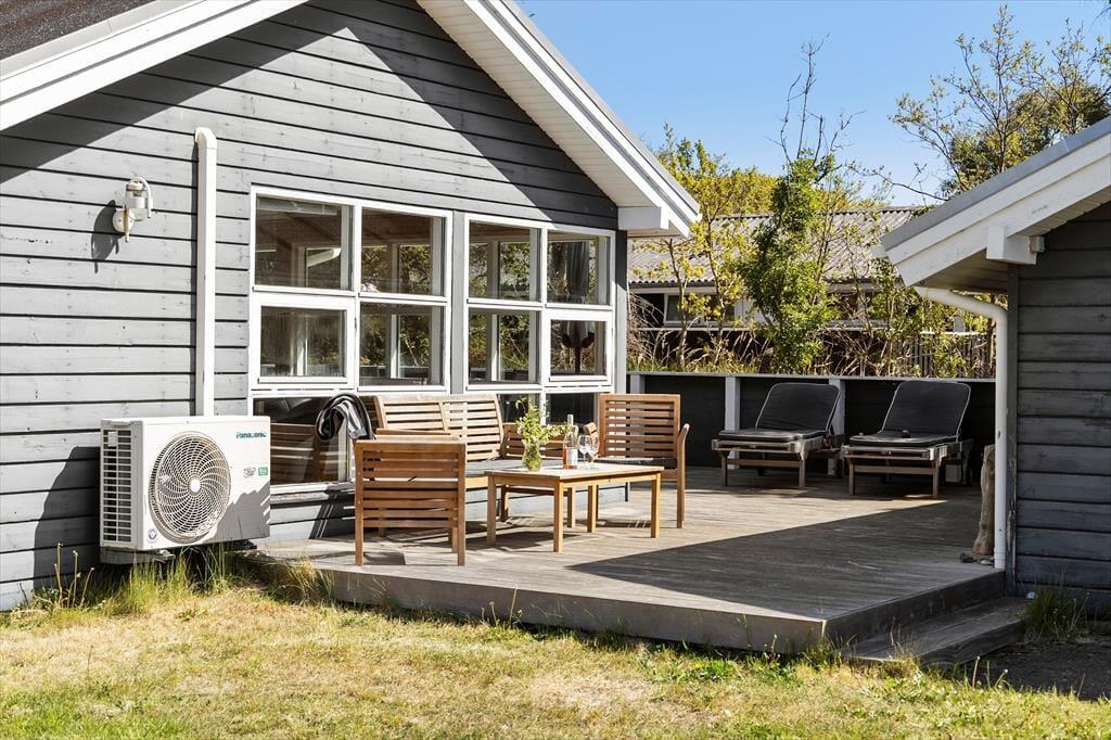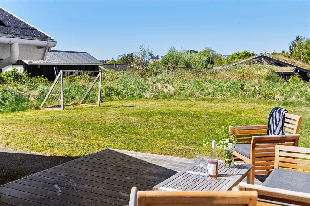 Sommerhuset ligger på en dejlig, fredelig grund, der giver mulighed for at nyde det gode vejr og naturen. På terrassen kan du starte dagen med morgenkaffen eller slutte af med grillmad under åben himmel. Haven indbyder til fri leg og afslapning, og med et stenkast til stranden kan du hurtigt få fødderne i sandet og nyde Vesterhavets friske brise. Uanset om du foretrækker afslappede dage i haven eller hyggelige stunder i udestuen, byder dette sommerhus på masser af muligheder for at nyde ferien fuldt ud.