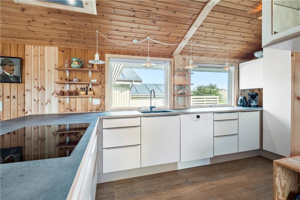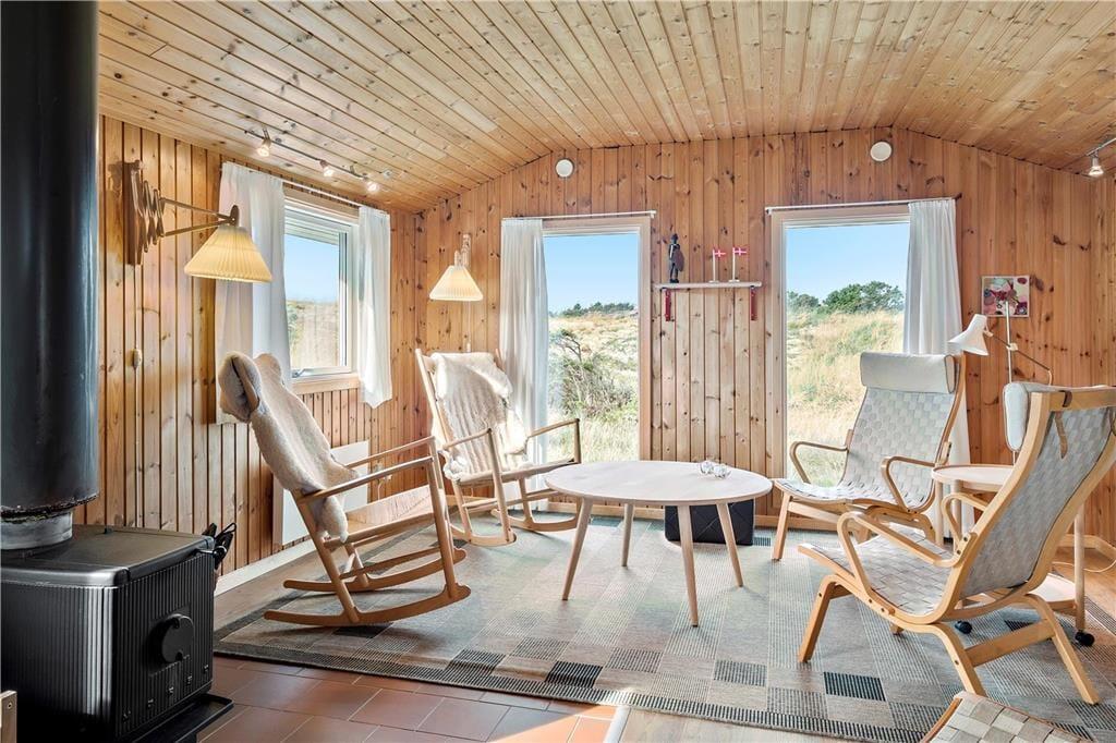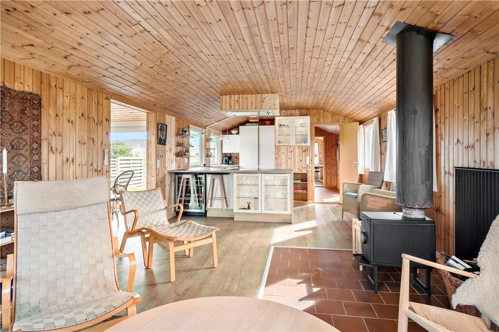 Inden døre bliver du mødt af en lys og indbydende indretning, der straks får dig til at føle dig hjemme. Stuen med det store vinduesparti inviterer naturen indenfor og skaber en rolig atmosfære, der indbyder til afslapning og hyggelige stunder foran brændeovnen. De komfortable møbler og det åbne køkken gør det nemt at samles om madlavning, spil eller bare en god snak. Med tre soveværelser, der alle emmer af ferieidyl, og et velindrettet badeværelse er der god plads til både familier og venner, der ønsker at tilbringe kvalitetstid sammen.