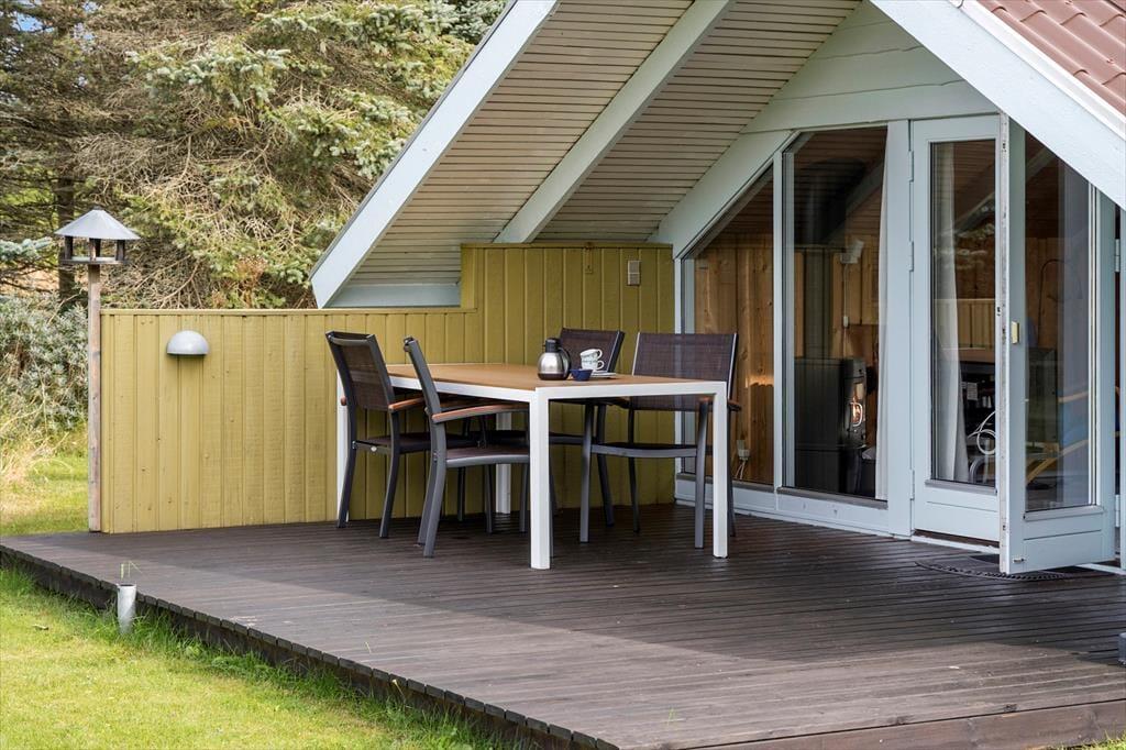 Udenfor åbner der sig en dejlig have, hvor du kan mærke naturens ro og lade batterierne op. På den afskærmede terrasse kan du nyde feriens morgenstunder med en kop kaffe i hånden, mens solens første stråler luner. Haven indbyder til både leg og afslapning, og her er plads til at hele familien kan nyde ferien. Om aftenen kan I samles omkring grillen på terrassen og nyde de lange, lyse sommernætter, hvor tiden står stille, og ferien kan nydes i fulde drag.