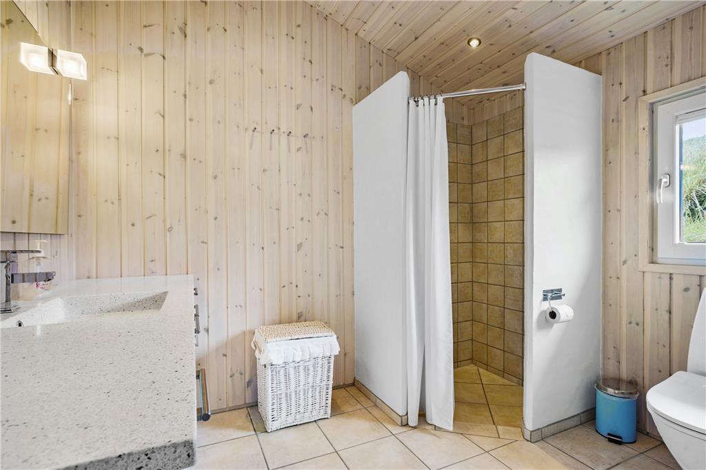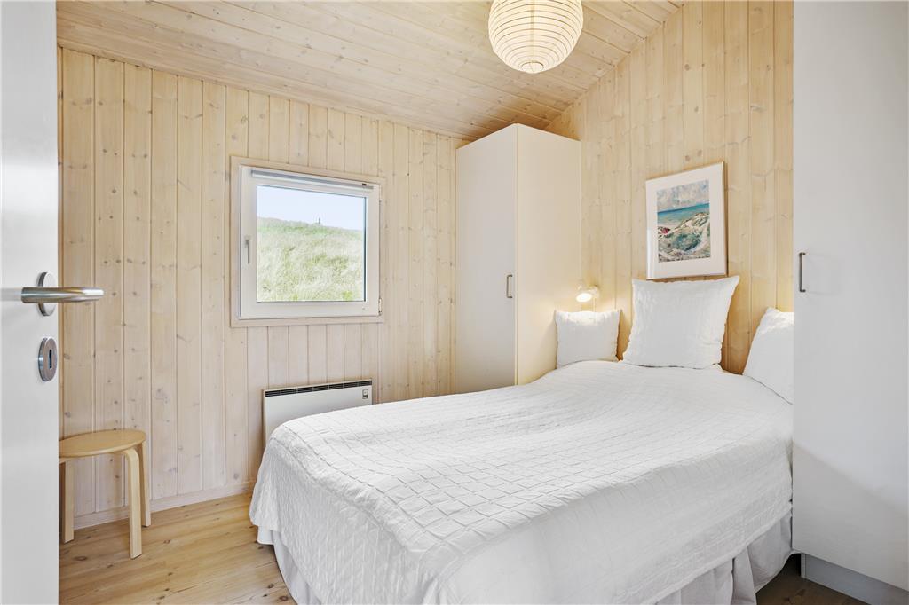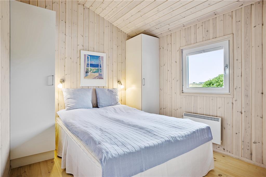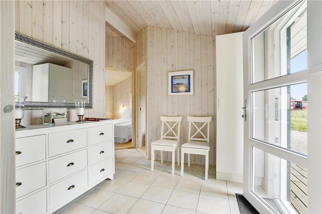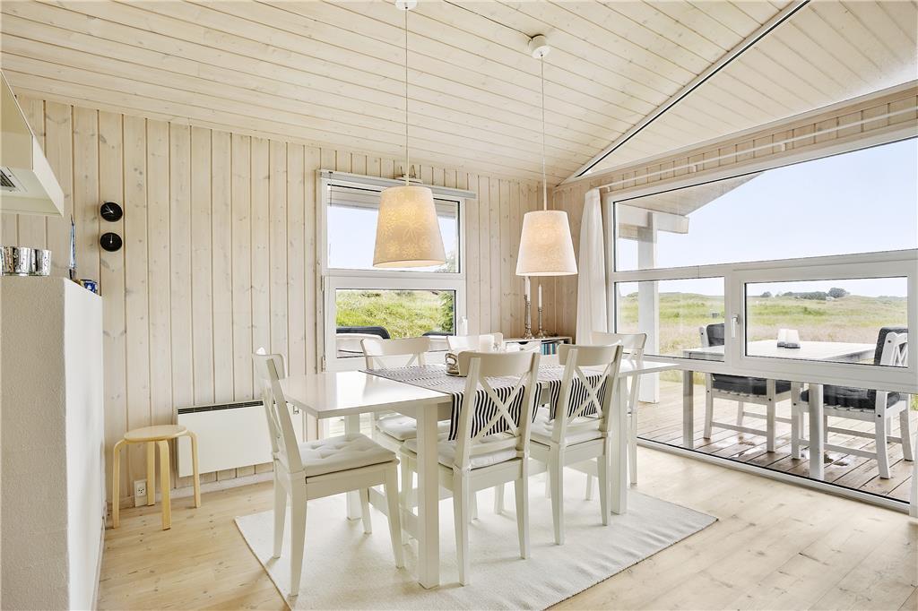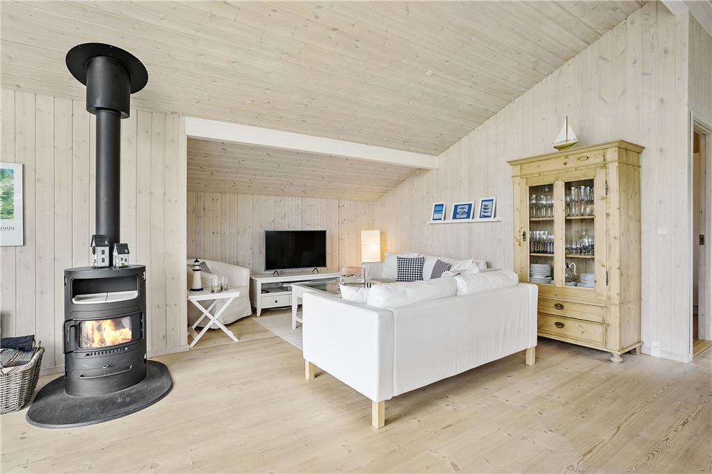Sommerhuset er moderne og stilfuldt indrettet med store vinduer, der giver et skønt lysindfald i alle rum. De lyse møbler passer perfekt til træpanelerne og de hvide elementer i det åbne køkken. Brændeovnen tilføjer en hyggelig atmosfære. Huset har tre soveværelser med dobbeltsenge og to badeværelser, begge med bruser. Derudover er det udstyret med opvaskemaskine og vaskemaskine, så I kan bruge tiden på afslapning og hygge.
