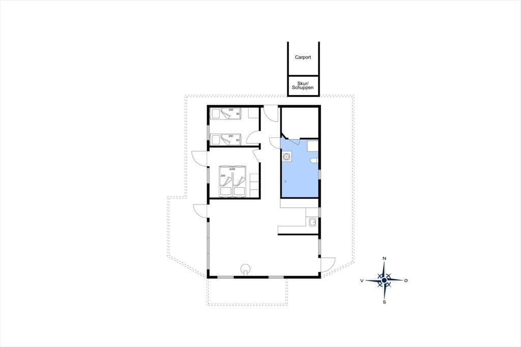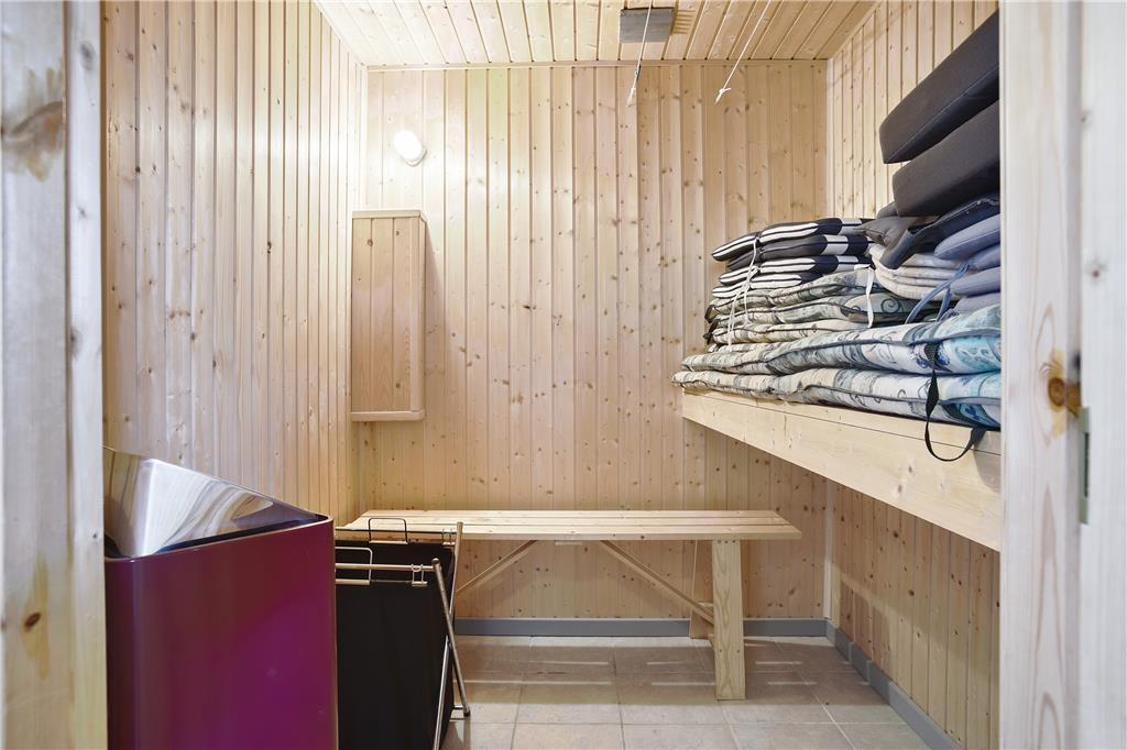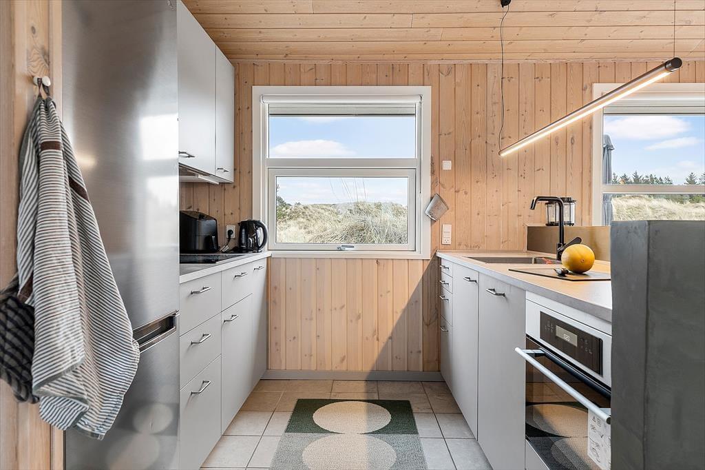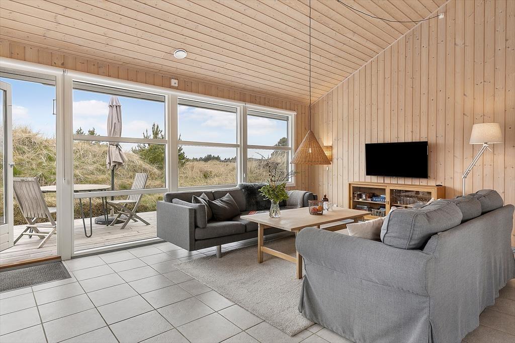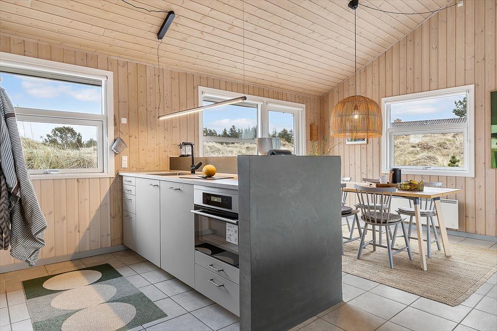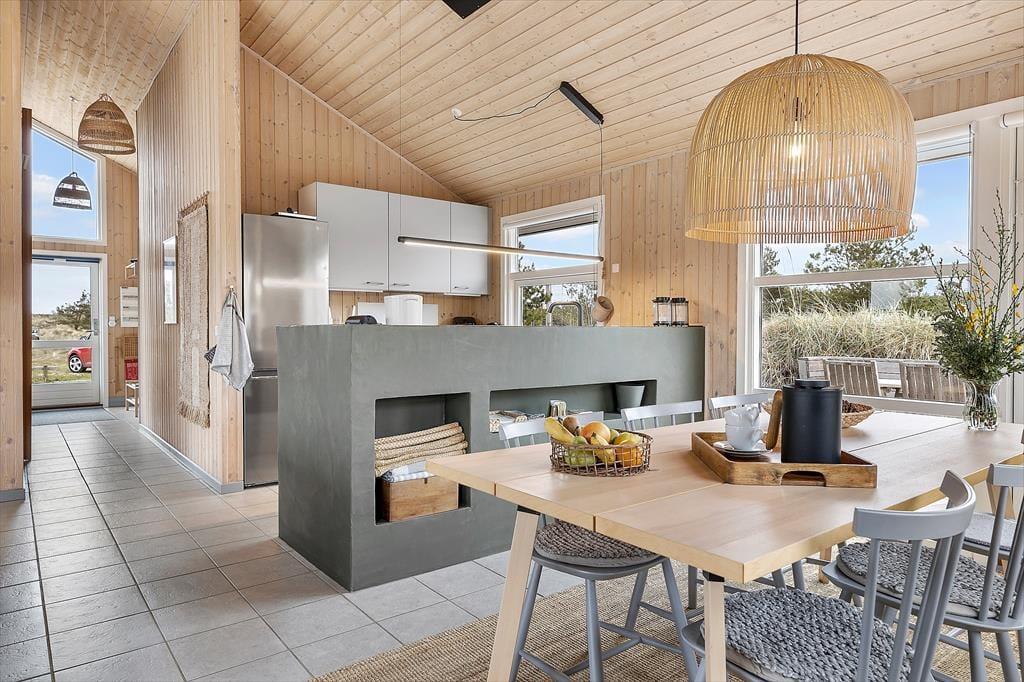 Indenfor møder du en lys og rummelig atmosfære, der straks giver dig følelsen af at være hjemme. Sommerhusets store stue med åbent køkken er familiens naturlige samlingspunkt, hvor I kan tilbringe timer med samtaler, spil eller hyggestunder foran brændeovnen. Det store badeværelse emmer af komfort og afslapning med god plads og rolige omgivelser, der inviterer til en pause fra hverdagens stress. Husets værelser er indrettet til at give dig ro og velvære, så du kan vågne op til fuglesang og sollys gennem vinduerne.