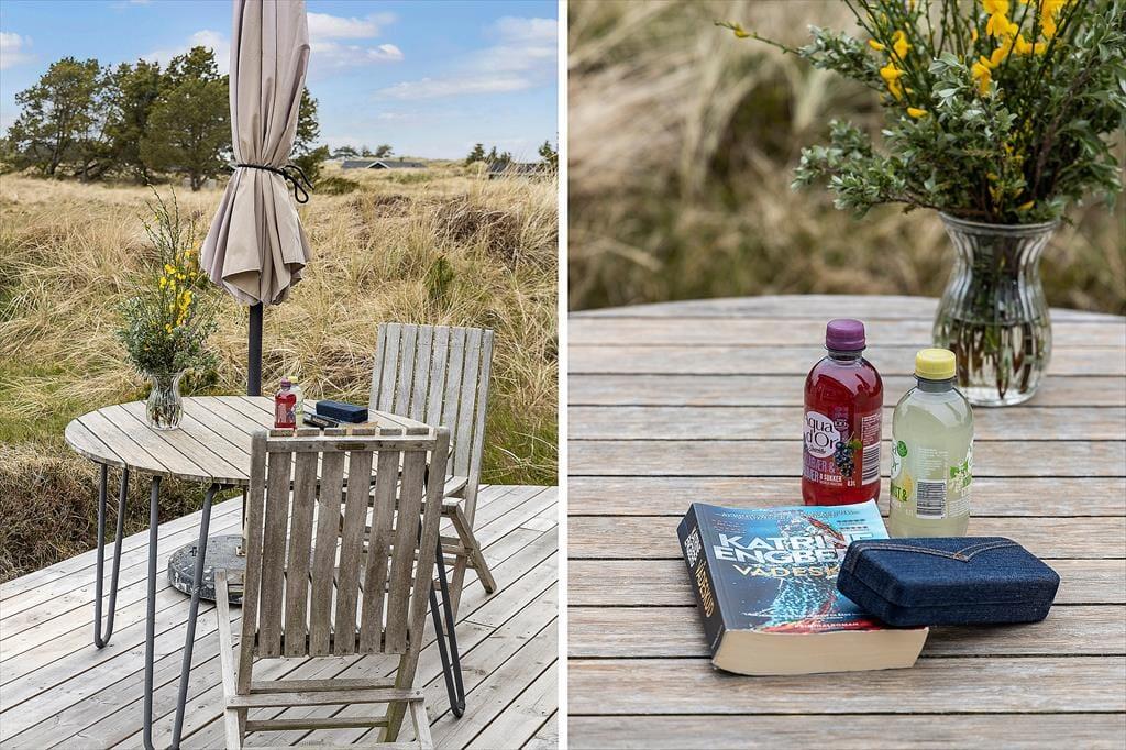 Midt i naturen og omgivet af høje træer kan du på terrassen mærke roen sænke sig. Sommerhusets udendørsarealer er som skabt til lange, afslappede dage i solen, hvad enten du vil læse en bog, grille med familien eller bare nyde lyden af vinden, der rasler i træerne. Haven giver børnene plads til fri leg, og de voksne kan finde skyggefulde kroge til en rolig stund. Med naturen som nabo og en helt særlig feriestemning kan du let glemme tid og sted, når du er her.