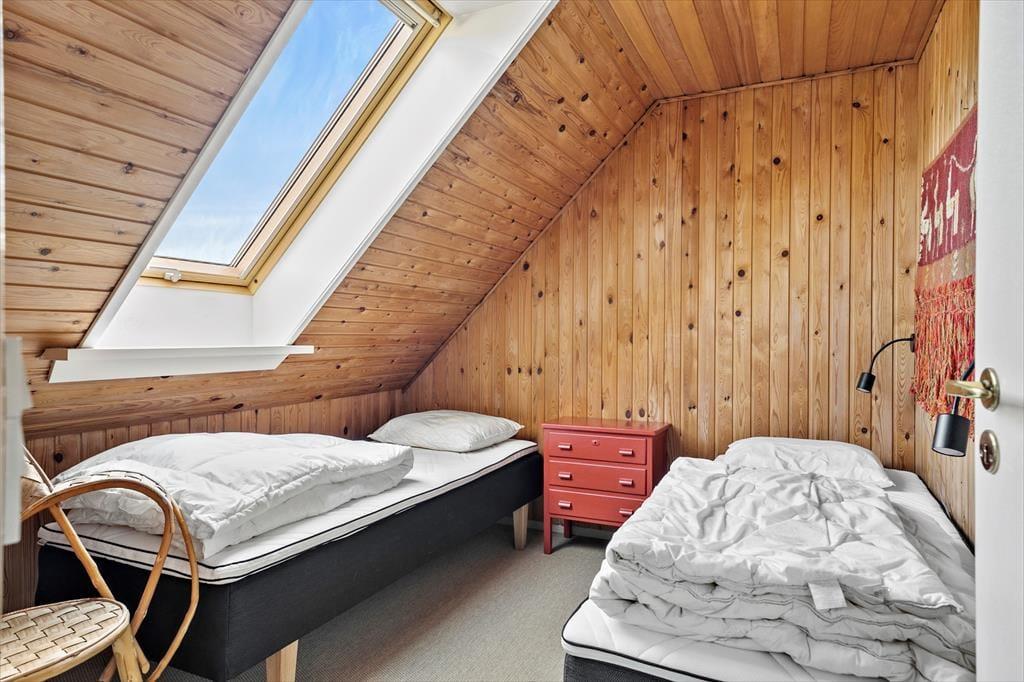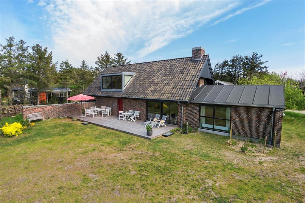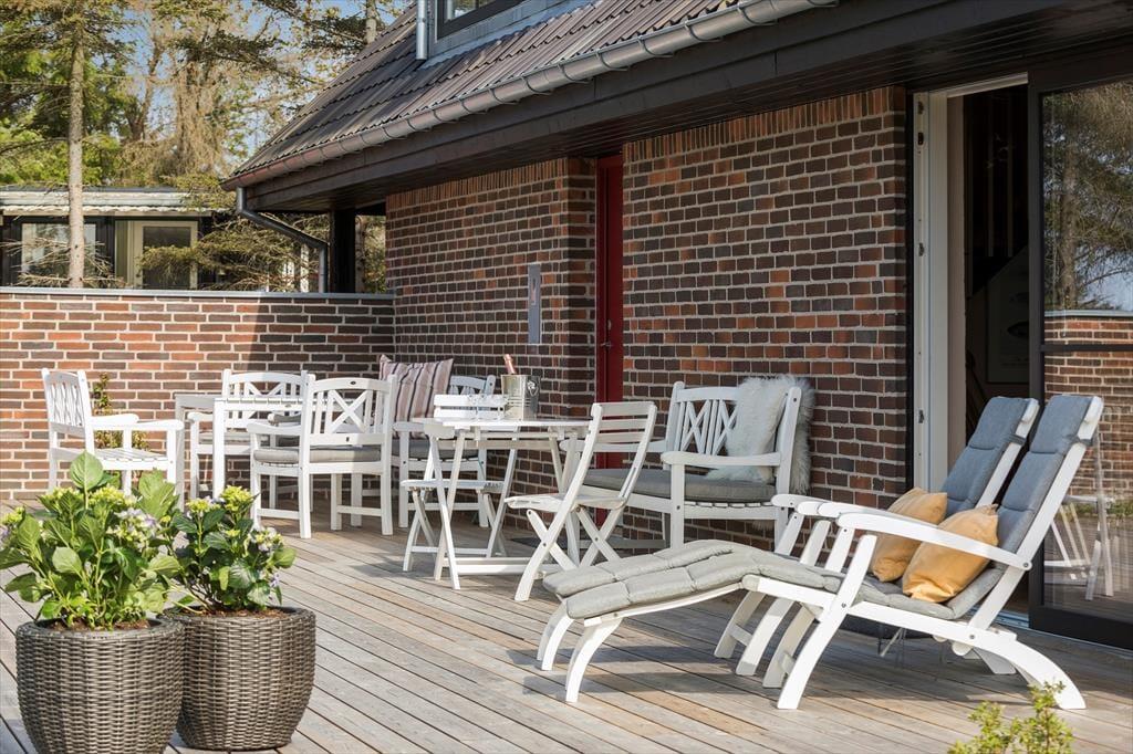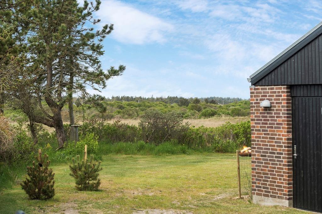 Udenfor er rammerne sat til et rigtigt sommerhusliv. Haven er stor og grøn med en plan græsplæne, som lægger op til fodboldspil, kroketturneringer eller måske bare en lur i solen på et tæppe under åben himmel. Det rolige hjørne af Tversted, hvor huset ligger, sørger for, at du virkelig kan mærke freden og stilheden – kun afbrudt af vindens susen i træerne og fuglenes morgensang. Du kan starte dagen med morgenmad i solen, og når eftermiddagen kalder på lidt afslapning, finder du dig til rette i en liggestol med en god bog. Når aftenen falder på, er det oplagt at tænde op i grillen og nyde et måltid i det fri, mens du ser solens sidste stråler danse over trætoppene og det fredede landskab i baggrunden.