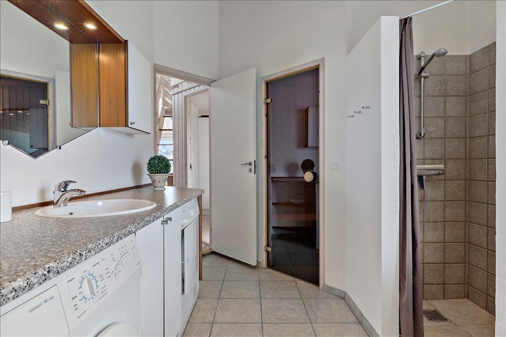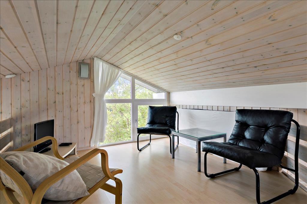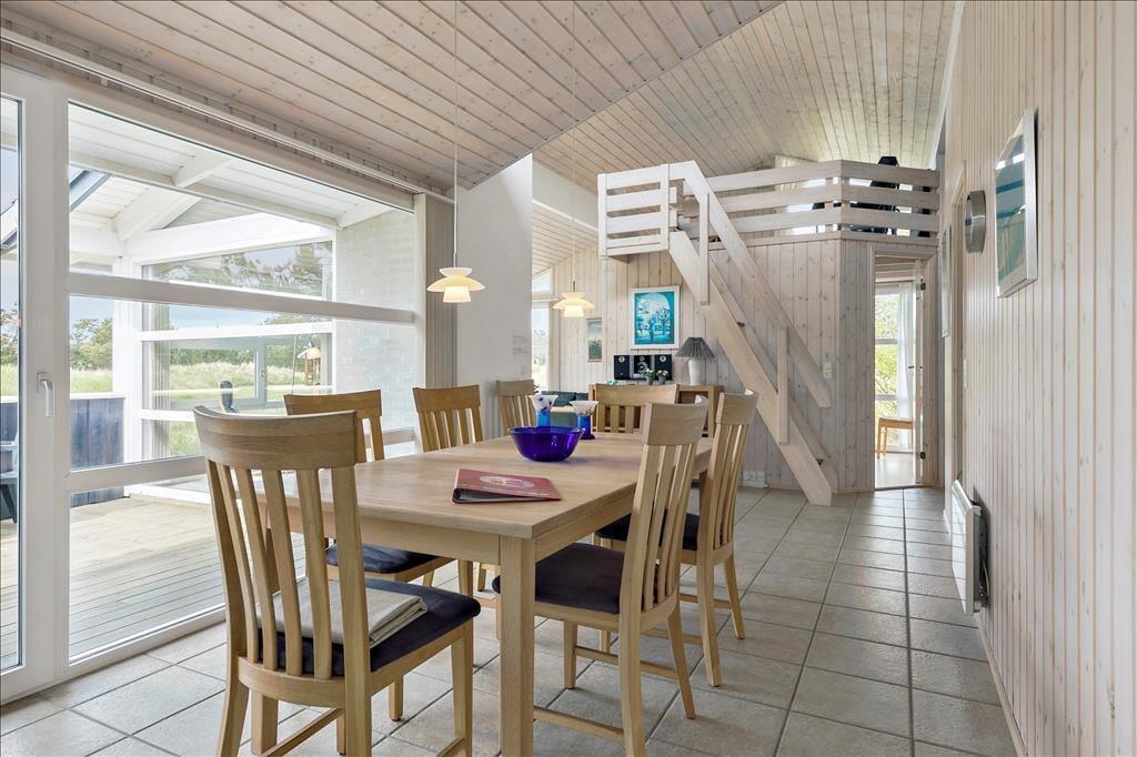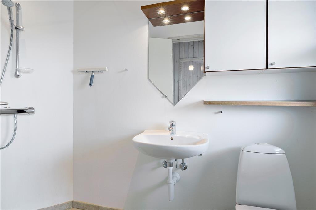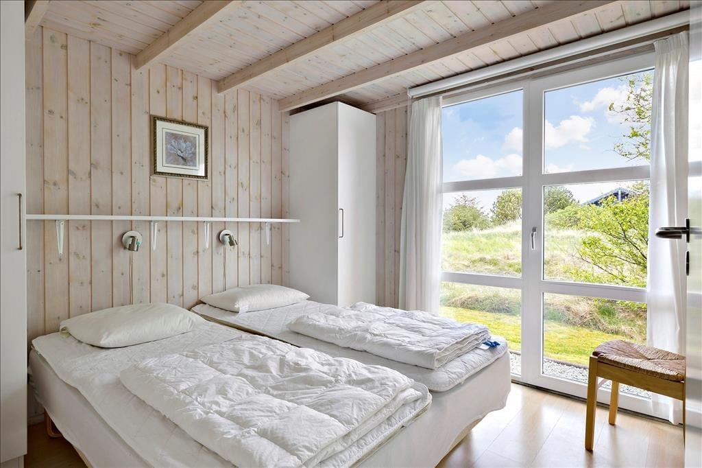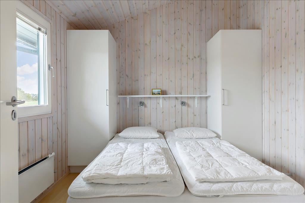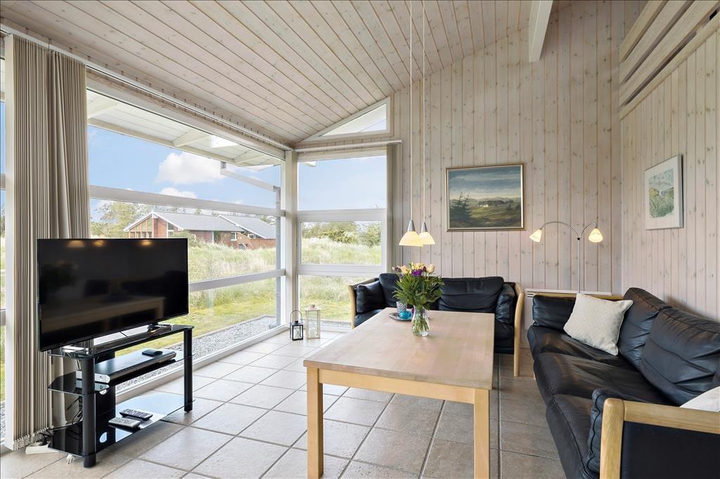 Når du træder ind i sommerhuset, mødes du straks af en lys og indbydende atmosfære. De store vinduespartier lader dagslyset strømme ind i rummene, mens de høje lofter skaber en fornemmelse af luft og plads. Stuen er et hyggeligt samlingspunkt med bløde møbler, brændeovn og udsigt til haven. Her kan du og dine kære samles til brætspil, gode samtaler eller afslappende aftener foran fladskærmen. Køkkenet ligger i åben forbindelse med stuen, hvilket gør det nemt at være sammen, mens der tilberedes måltider. De tre soveværelser er komfortable og indrettet til afslapning, og badeværelset er moderne og praktisk, så feriedagene starter og slutter bekvemt.