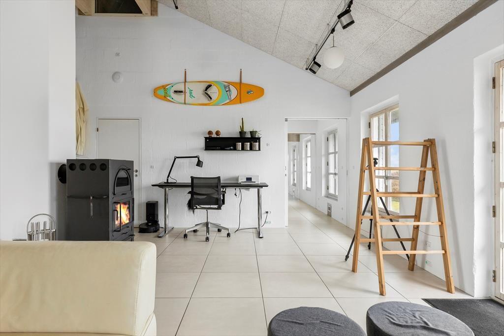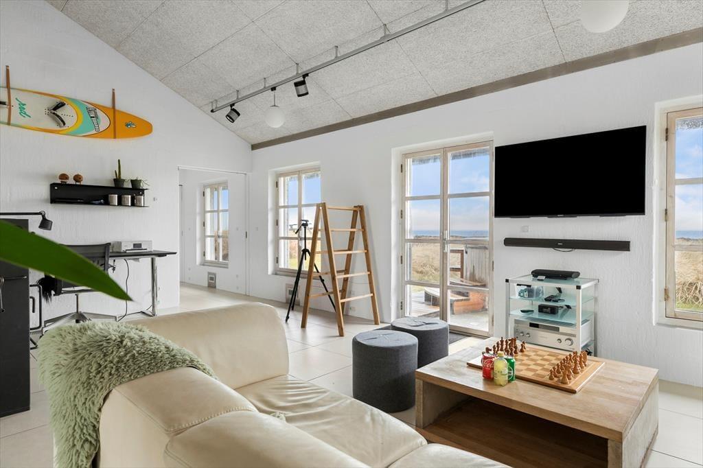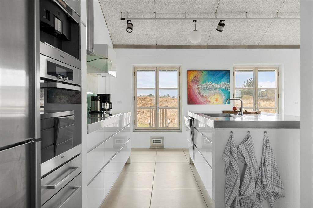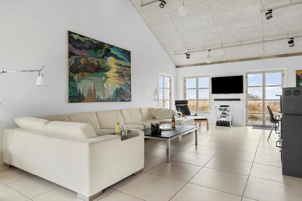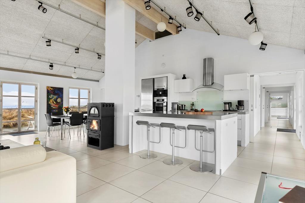 Allerede ved første skridt ind i dette eksklusive sommerhus på Mellemklitvej 8 bliver du mødt af en atmosfære af luksus, kvalitet og komfort. De store vinduespartier med udsigt til Vesterhavet, lader lyset strømme ind og skaber en fantastisk rumfornemmelse i det åbne opholdsrum. Her er original kunst på væggene og loft til kip, hvilket forstærker den luftige stemning. Stuen indbyder til hyggelige aftener foran brændeovnen, mens det stilfulde køkken byder på både vinkøler og moderne faciliteter, så du kan tilberede måltider i bedste kvalitet. En gennemtænkt planløsning med stue og brændeovn i begge ender, gør det muligt at dele huset op i sektioner, hvilket gør det ideelt for både par på romantisk ferie og større familier, der rejser sammen. En sauna giver dig mulighed for at forkæle kroppen med varme og velvære efter en lang dag i naturen. Teknologiske finesser, som intelligent lys- og varmestyring, stort solcelleanlæg og centralventilation sikrer en behagelig temperatur året rundt og bidrager samtidig til et lavt energiforbrug.