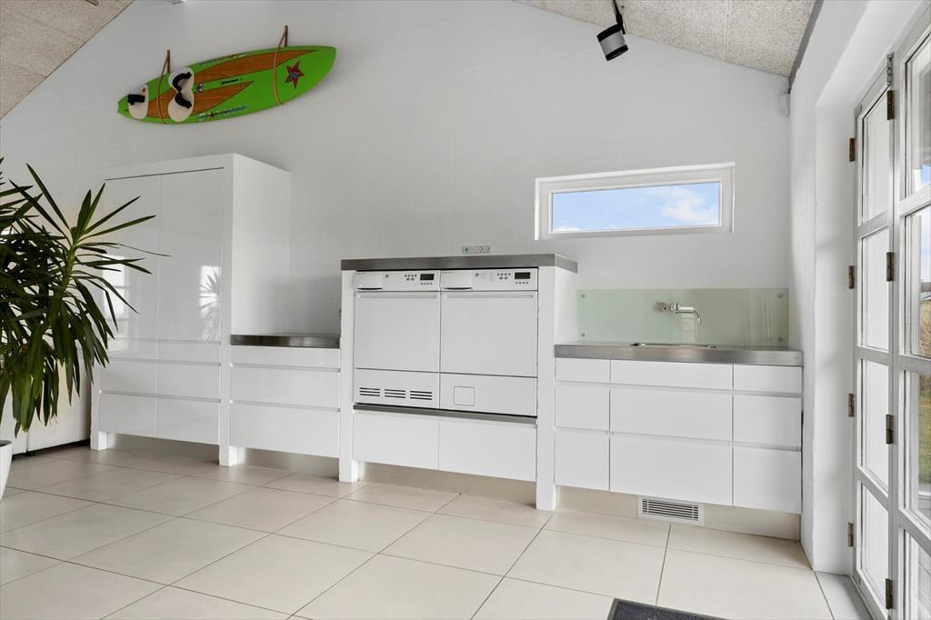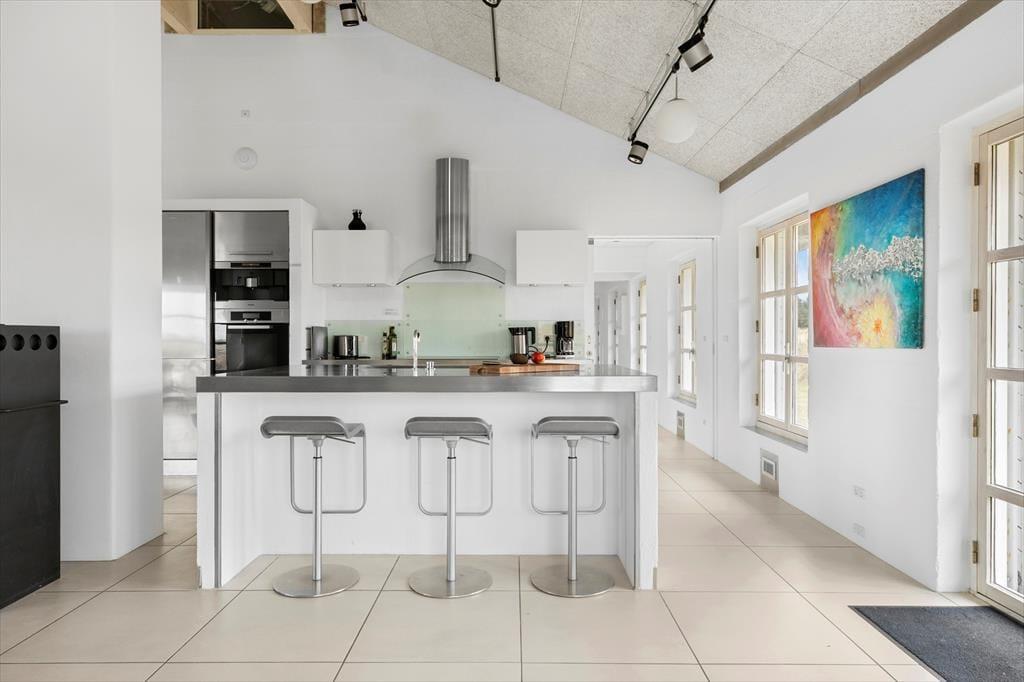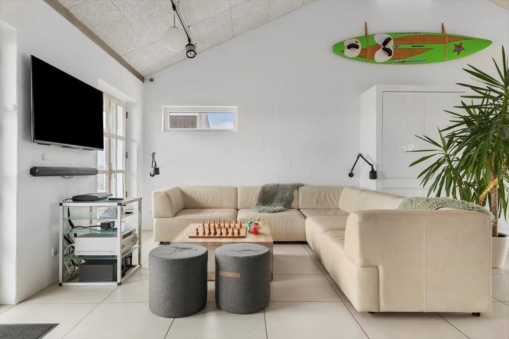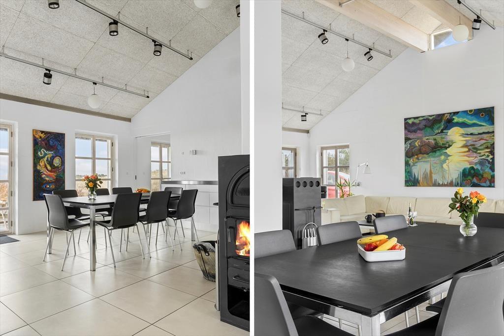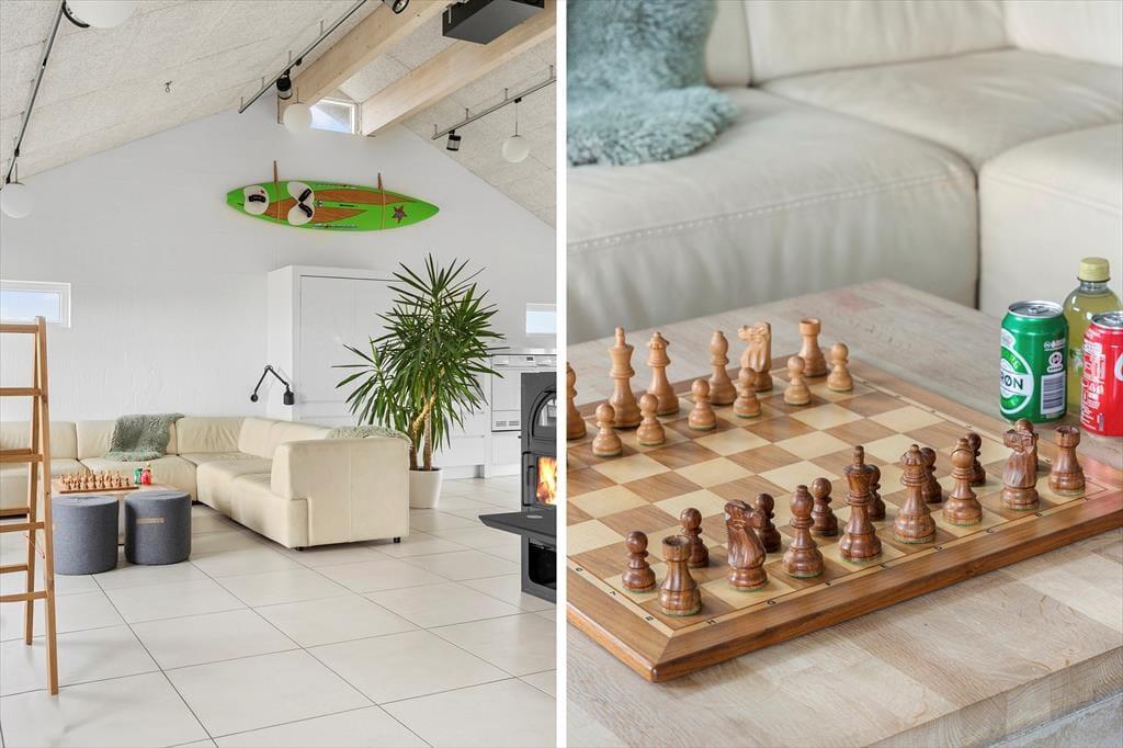 Allerede ved første skridt ind i dette eksklusive sommerhus på Mellemklitvej 8 bliver du mødt af en atmosfære af luksus, kvalitet og komfort. De store vinduespartier med udsigt til Vesterhavet, lader lyset strømme ind og skaber en fantastisk rumfornemmelse i det åbne opholdsrum. Her er original kunst på væggene og loft til kip, hvilket forstærker den luftige stemning. Stuen indbyder til hyggelige aftener foran brændeovnen, mens det stilfulde køkken byder på både vinkøler og moderne faciliteter, så du kan tilberede måltider i bedste kvalitet. En gennemtænkt planløsning med stue og brændeovn i begge ender, gør det muligt at dele huset op i sektioner, hvilket gør det ideelt for både par på romantisk ferie og større familier, der rejser sammen. En sauna giver dig mulighed for at forkæle kroppen med varme og velvære efter en lang dag i naturen. Teknologiske finesser, som intelligent lys- og varmestyring, stort solcelleanlæg og centralventilation sikrer en behagelig temperatur året rundt og bidrager samtidig til et lavt energiforbrug.