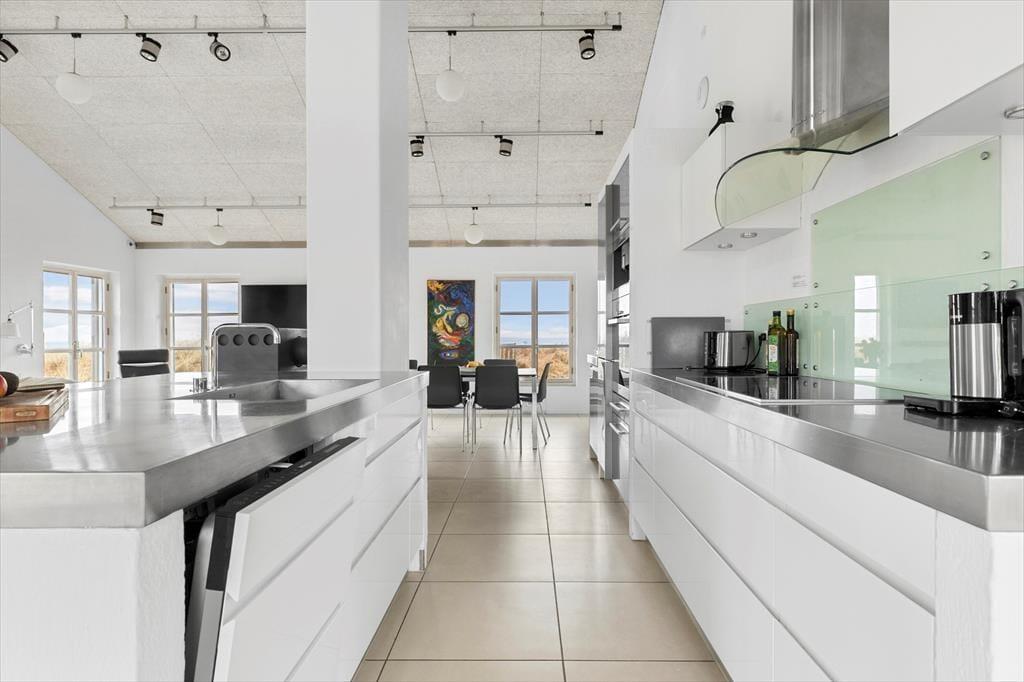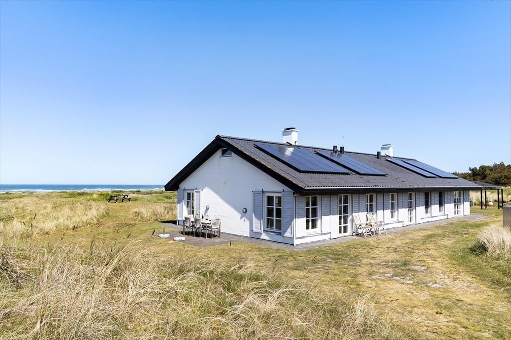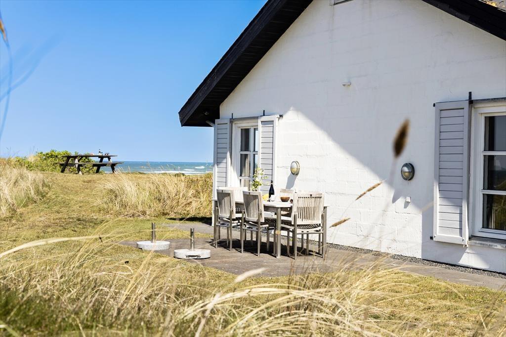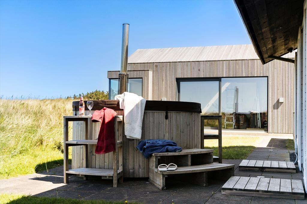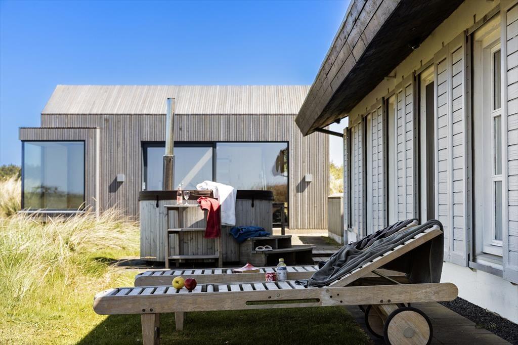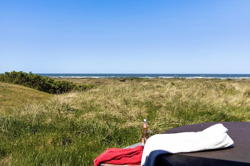 Husets beliggenhed på den store 4000m2 autentiske, ugenerte naturgrund, byder på et rigt dyreliv og et sandt wellness-paradis. Det store terrasseområde inviterer til afslapning i solen, mens vildmarksbadet frister med varme bobler under åben himmel. Uanset om du tager den lille private sti til stranden og nyder en tidlig morgendukkert eller slapper af under stjernerne om aftenen, så er her fred og ro og udsigten fra terrassen er ganske enkelt altid betagende – herfra kan du nyde panoramaudsigten over det fredelige klitlandskab og fornemme den friske havluft.