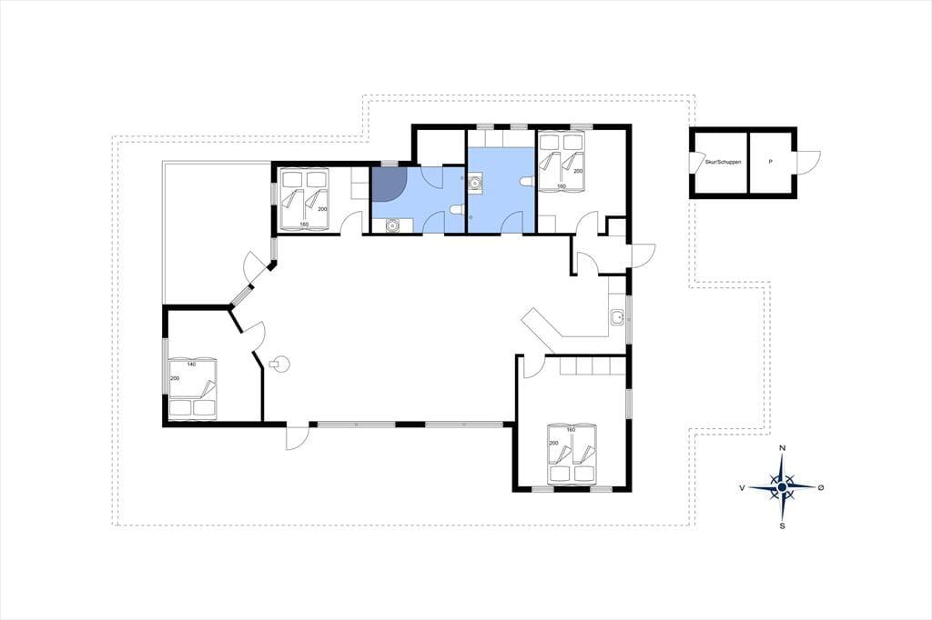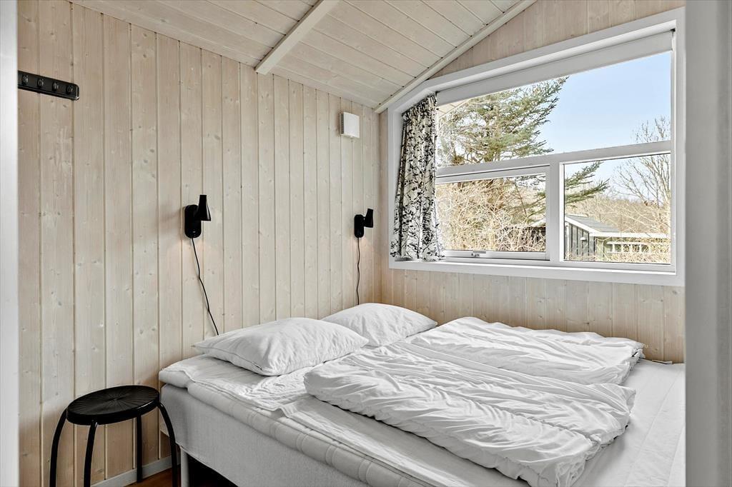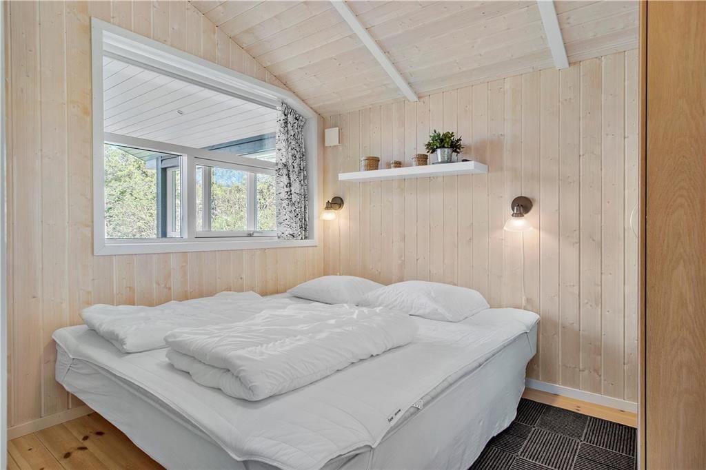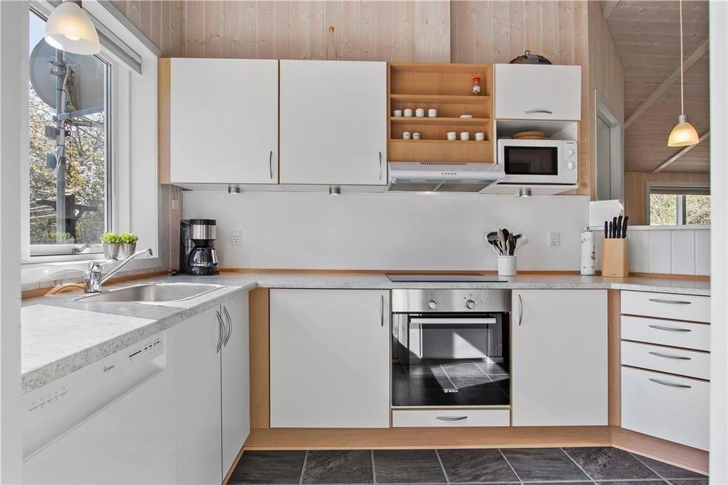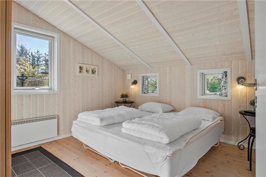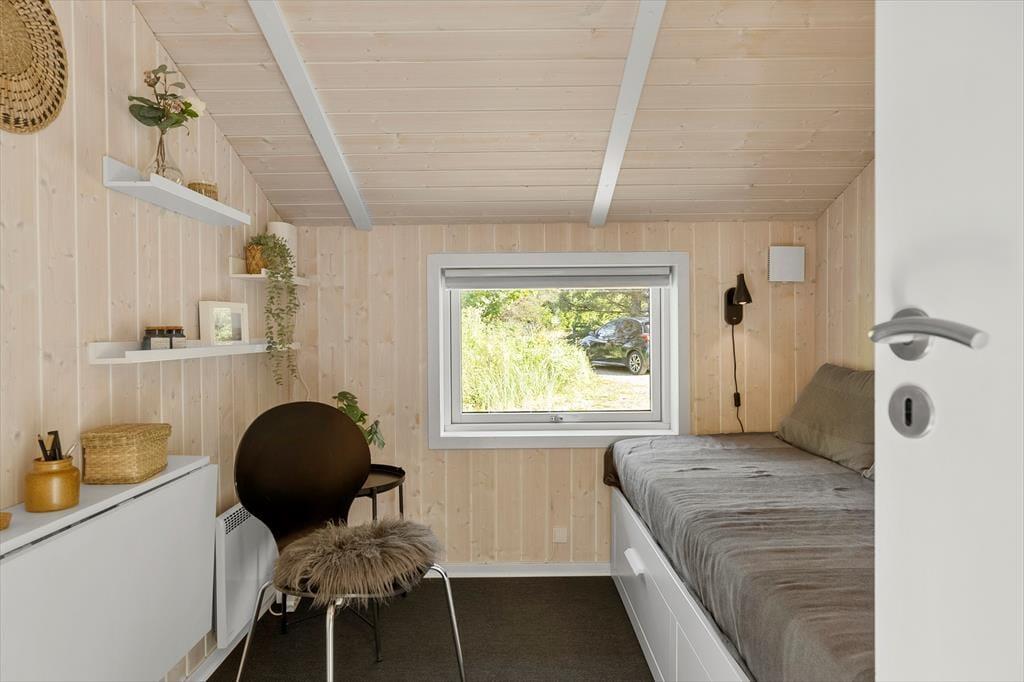 Når du træder indenfor i sommerhuset, bliver du mødt af et lyst og venligt indre med store vinduespartier, der lukker lyset og naturen ind. Huset er indrettet med en gennemtænkt planløsning, der gør det velegnet til to familier. De åbne opholdsrum indbyder til fællesskab, mens værelserne giver plads til privatliv og ro. Stuen er husets naturlige samlingspunkt, hvor du kan slappe af i de bløde møbler og nyde udsigten til de rolige omgivelser. Køkkenet er åbent og veludstyret, så du let kan tilberede måltider, mens børnene leger i nærheden.