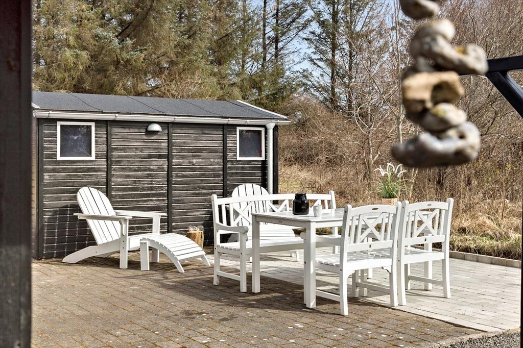 Udenfor finder du alt, hvad du behøver for at nyde livet under åben himmel. Huset ligger på en stor grund, hvor der er plads til både leg og afslapning. Her kan du starte dagen med morgenkaffen på terrassen eller afslutte den med en grillaften i godt selskab. De rolige omgivelser giver dig følelsen af at være midt i naturen, og de nærliggende klitter indbyder til lange gåture eller små eventyr for familiens yngste.