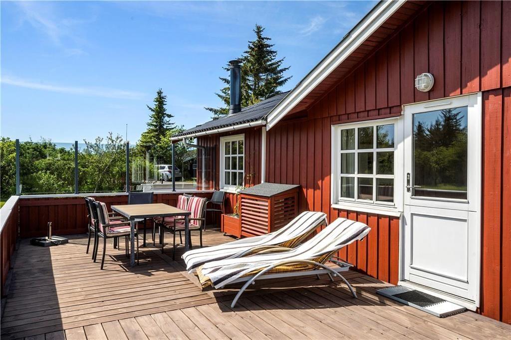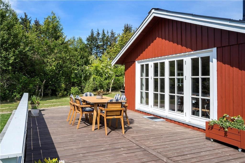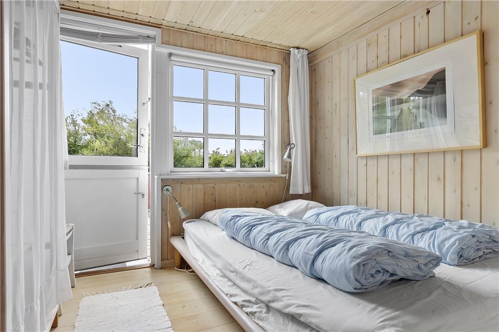 Udenfor inviterer den store terrasse og de omkringliggende naturomgivelser til ro og afslapning. Start dagen med en kop kaffe, mens du nyder udsigten over det smukke landskab og lytter til naturens lyde. Med Vesterhavet blot en kort gåtur væk er det oplagt at tage en tur til stranden og mærke sandet mellem tæerne. De fredelige omgivelser omkring sommerhuset giver mulighed for fordybelse og tid væk fra hverdagens travlhed – perfekt til både afslapning og små eventyr i det fri.