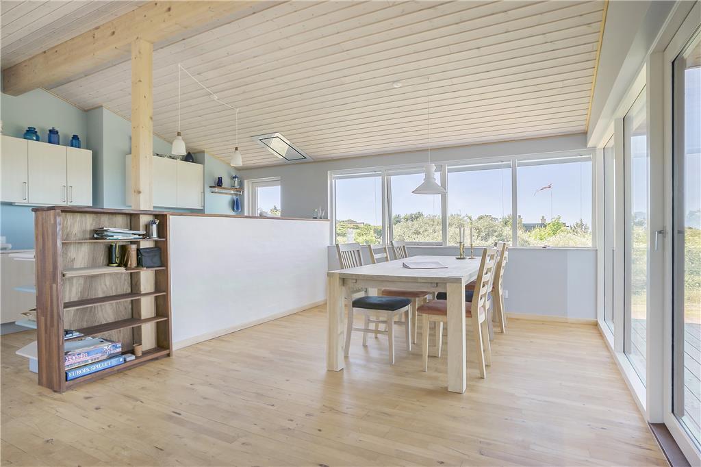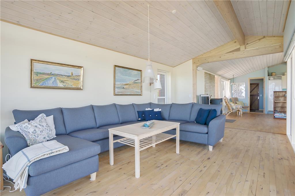 Når du træder indenfor, bliver du mødt af en lys og indbydende indretning, der skaber en varm og hjemlig atmosfære. De store vinduer inviterer naturen og lyset helt ind i rummene og giver dig mulighed for at nyde den fantastiske udsigt, selv når du er indendørs. Stuen indbyder til afslapning med sin komfortable indretning og hyggelige stemning – perfekt til en kop kaffe, en god bog eller en film. Køkkenet er åbent og praktisk indrettet, så det er nemt at lave måltider, mens familien hygger sig i nærheden. Huset tilbyder en oplevelse af fred og afslapning, uanset årstiden.