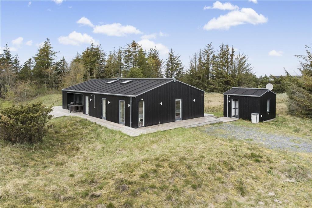 Udenfor mødes du af en naturgrund, der indbyder til både aktivitet og afslapning. Den store terrasse giver rig mulighed for at nyde livet under åben himmel, hvad enten du vil starte dagen med en kop kaffe eller slutte af med en lækker grillmiddag. Her kan du høre fuglene synge og se dyrelivet udfolde sig omkring dig. Haven og den omkringliggende natur skaber en helt særlig atmosfære, som kun forstærkes af den friske havluft fra stranden, der ligger blot en kort gåtur væk.