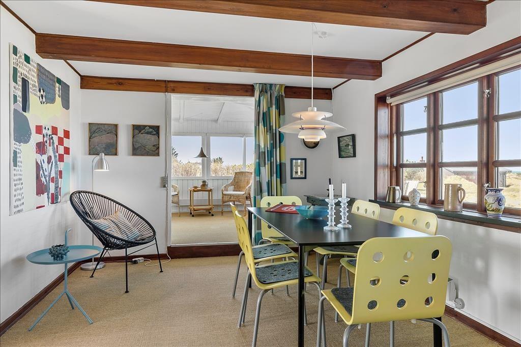Det omkringliggende landskab er en oplevelse i sig selv. Sommerhuset ligger på en stor naturgrund med udsigt til klitterne og det brusende Vesterhav. Den hyggelige solgård er et naturligt samlingspunkt, hvor du kan starte dagen med morgenkaffe i solen eller nyde en middag under åben himmel. Fra terrassen kan du lade blikket glide ud over den unikke udsigt, mens du lytter til havets rolige brusen. Her er der rig mulighed for at finde ro og fordybelse, mens naturens skønhed folder sig ud lige foran dig.