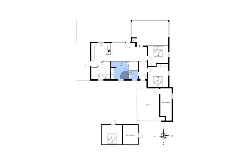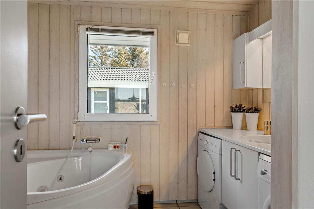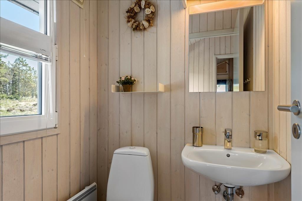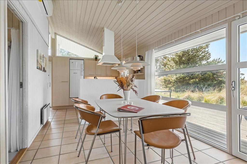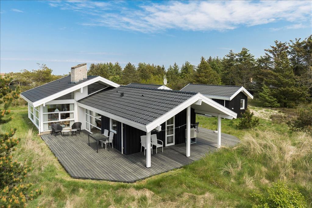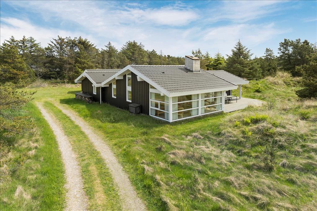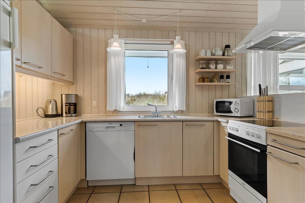 Haven og terrasserne omkring sommerhuset er ideelle til lange dage under åben himmel. Den store terrasse giver plads til både morgenkaffe, solbadning og hyggelige grillaftener med familie og venner. Naturgrunden omkring huset er fredfyldt og indbyder til afslapning og leg for både børn og voksne. Her kan du nyde fuglenes kvidren, vinden i træernes kroner og den forfriskende duft af hav. En kort tur på fødderne fører dig til klitterne og stranden, hvor du kan samle strandskaller eller blot nyde synet af Vesterhavets brusende bølger.