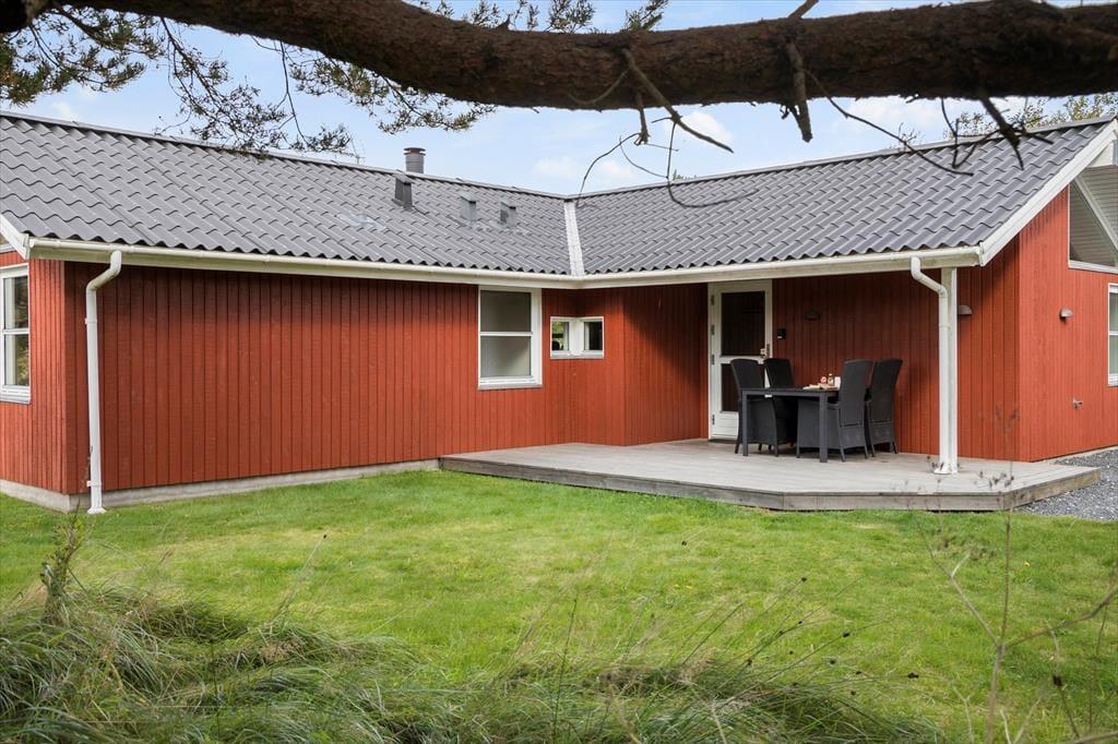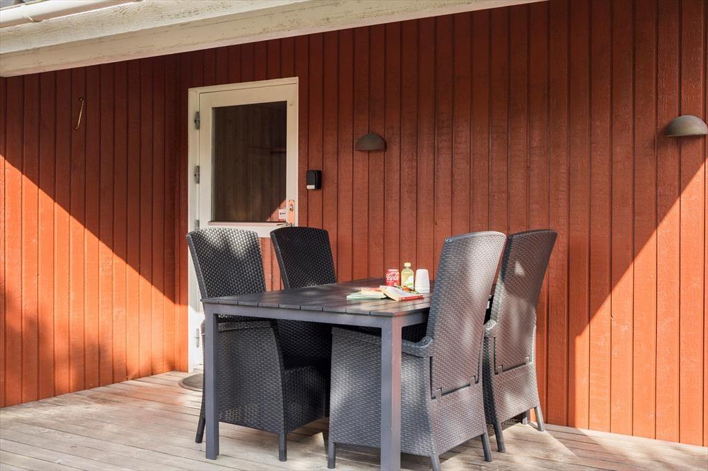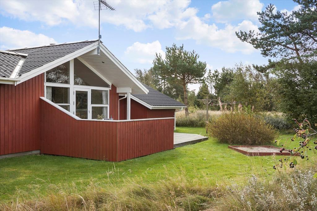 Sommerhuset ligger på en skøn naturgrund, hvor både børn og voksne kan boltre sig. Her er der god plads til leg på plænen og afslapning på terrassen, der er udstyret med havemøbler og grill. Den ophøjede terrasse er ideel til at nyde morgensolen eller til en hyggelig grillaften, mens naturens lyde omgiver jer. Det omkringliggende landskab giver masser af muligheder for udendørs aktiviteter, og med plads til både ro og sjov kan hele familien finde sit favoritsted.