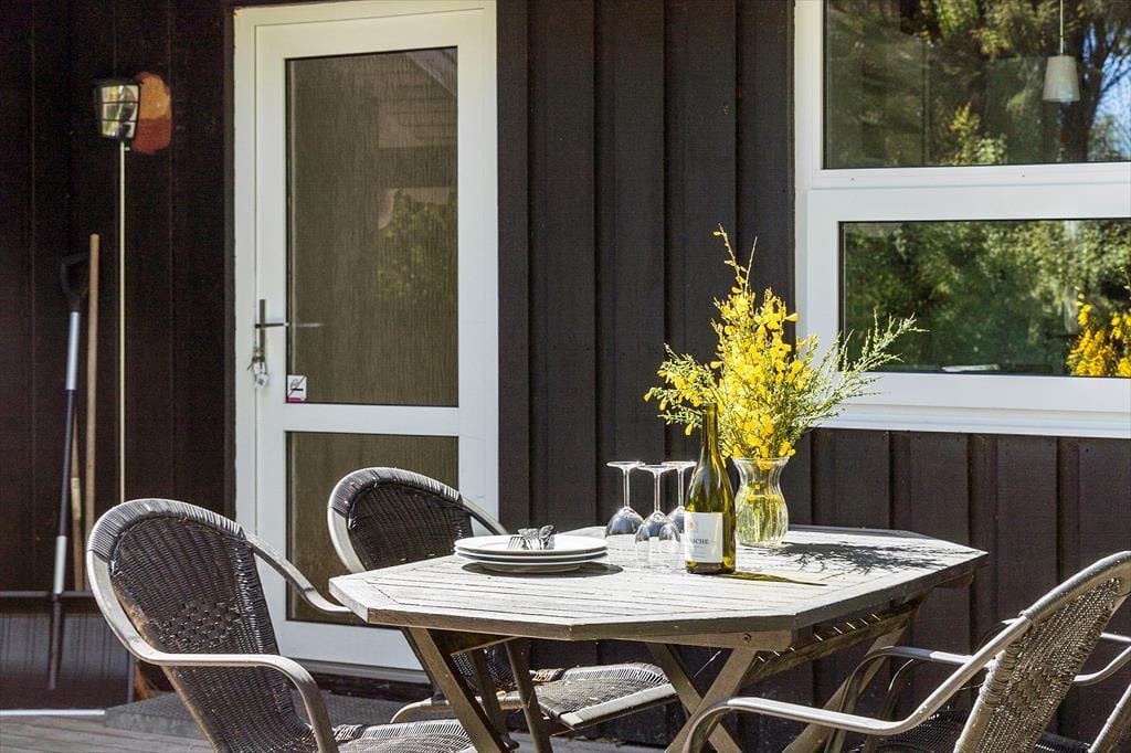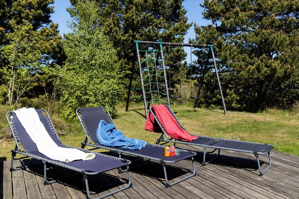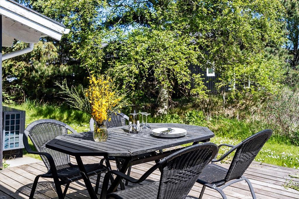 Udenfor finder du et herligt terrassemiljø, der er ideelt til afslapning og gode stunder i det fri. Med havemøbler og grill er det nemt at arrangere lækre måltider og nyde de lange sommeraftener under åben himmel. Børnene vil elske at lege på græsplænen, mens de voksne kan slappe af i solen eller nyde en kop kaffe i de rolige omgivelser. Huset er omkranset af skøn natur, og de udendørs arealer inviterer til afslapning og hyggelige aktiviteter for hele familien.