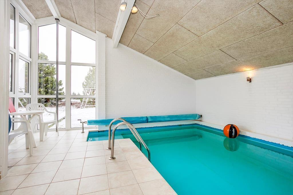 Indenfor bliver du mødt af en lys og rummelig indretning, der straks skaber en behagelig atmosfære. Hjertet i huset er det indbydende poolområde, hvor både store og små kan få mange timer til at gå med sjov og leg. Den kombinerede stue og spiseafdeling byder på komfortable møbler og store vinduespartier, der lader lyset strømme ind og giver udsigt til de grønne omgivelser. Køkkenet ligger i åben forbindelse med stuen og er perfekt til hyggeligt samvær, mens maden forberedes. Husets soveværelser er rolige og indrettet med fokus på komfort, så alle kan få en god nattesøvn.