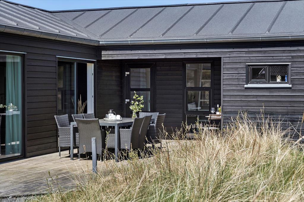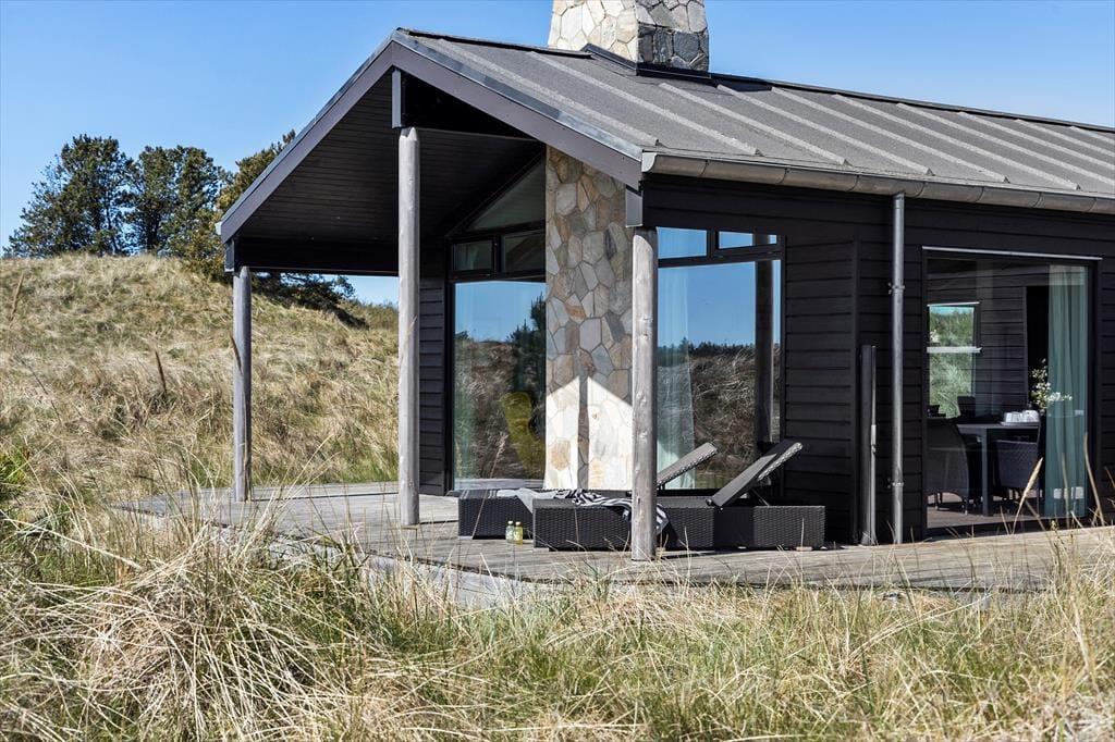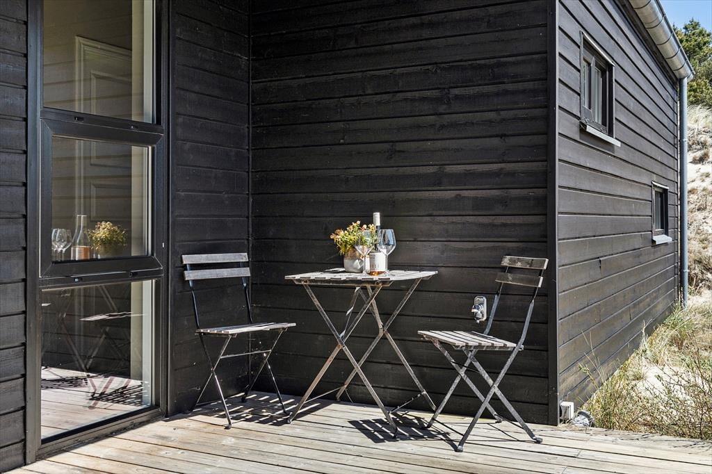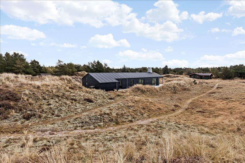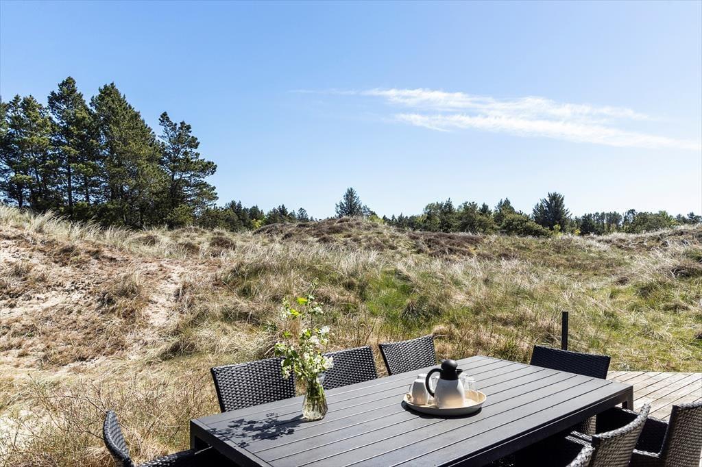 Udenfor inviterer de skønne udearealer til masser af tid under åben himmel. Terrassen, der er udstyret med komfortable havemøbler og en grill, er perfekt til hyggelige måltider i solen. Børnene kan lege frit på græsplænen, mens de voksne nyder en god bog eller en kop kaffe i de rolige omgivelser. Sommerhusets placering midt i naturen gør det let at finde fred og fordybelse, og du vil helt sikkert værdsætte det unikke samspil mellem huset og omgivelserne.