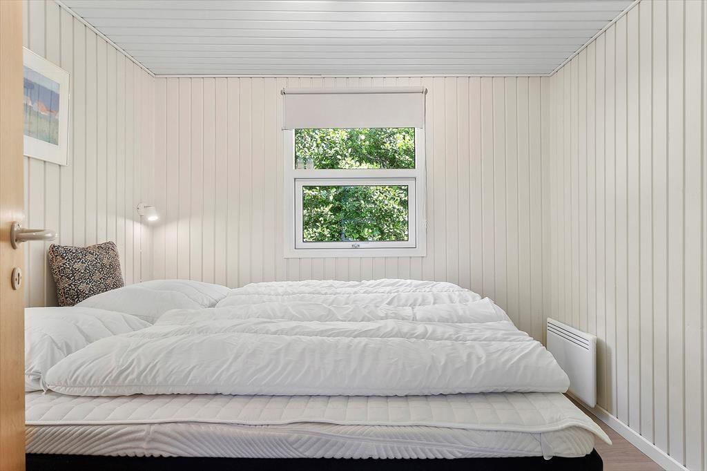 Sommerhuset byder dig indenfor med en lys og venlig atmosfære, der straks indgyder ro og feriestemning. Stuen er indrettet med behagelige møbler og store vinduer, som lukker naturen indenfor og skaber en rummelig følelse. Brændeovnen giver ekstra hygge på kølige aftener, mens det åbne køkken gør det nemt at tilberede familiens måltider. Soveværelserne er komfortable og indbydende, hvilket gør dem perfekte til afslappende feriedage.