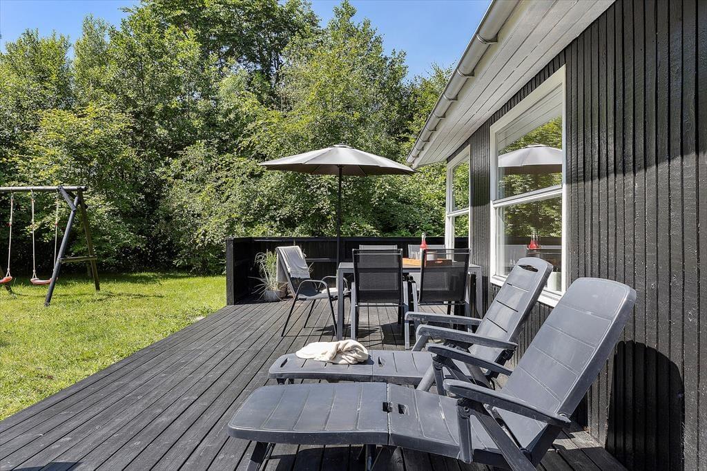 Den store plænegrund omkring huset er ideel til både afslapning og aktivitet. Her er masser af plads til at spille bold, løbe rundt eller bare nyde solen. På terrassen kan du nyde morgenkaffen i ro og mag, grille lækre retter til aftensmaden eller bare slappe af med en god bog. Den fredelige beliggenhed sikrer, at du kan trække stikket og nyde den friske luft i fulde drag.