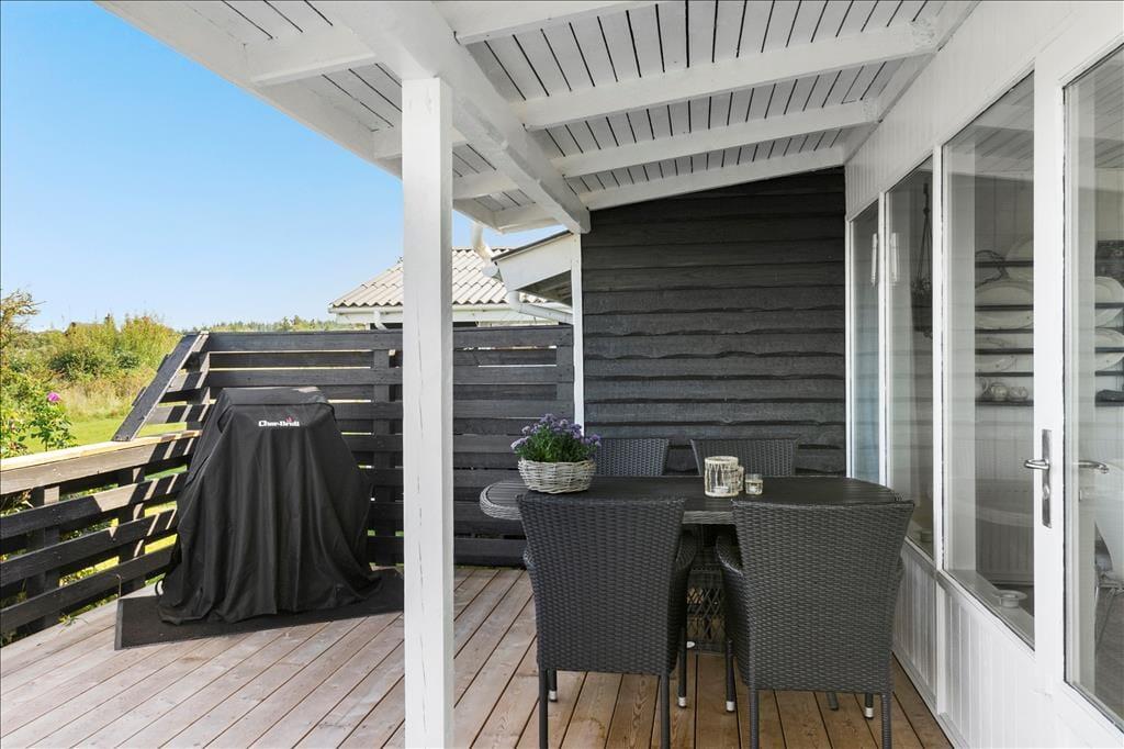 Udelivet får optimale betingelser her på adressen, hvor sommerhusets terrasse er indhegnet, så du både kan nyde privatlivet og lade de små lege frit i sikre rammer. Terrassen er det naturlige samlingspunkt på solrige dage – her kan du starte morgenen med en kop kaffe i den friske luft og slutte dagen af med aftensmad fra grillen og lyden af aftenvind i træerne. Haven er grøn og rummelig med masser af plads til boldspil og leg på græsset, og fordi grunden ligger fredeligt og tilbagetrukket fra trafik og støj, er her dejligt stille – perfekt til at lade batterierne op og bare nyde sommerens rolige rytme.