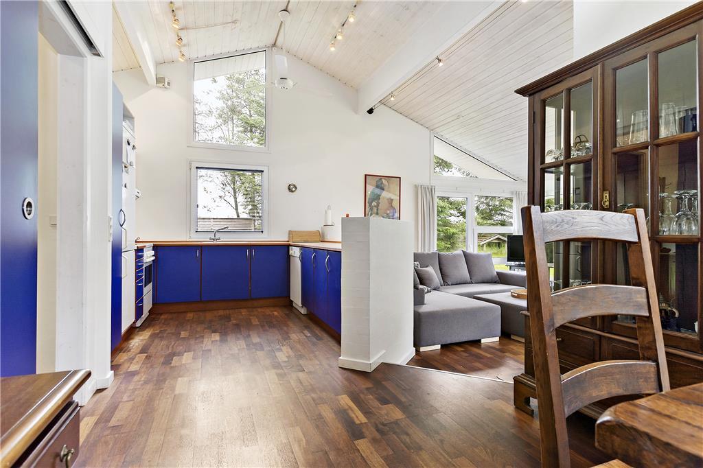 Indenfor mødes du af en lys og venlig indretning, der straks får dig til at føle dig hjemme. Sommerhuset er designet til at skabe hygge og komfort, uanset om du ønsker at slappe af med en god bog i stuen eller lave mad i det veludstyrede køkken, der ligger i åben forbindelse med spiseområdet. De rummelige soveværelser og et funktionelt badeværelse gør huset ideelt til både små og store familier. Fra stuen har du direkte adgang til terrassen, der forbinder inde- og udelivet på bedste vis.