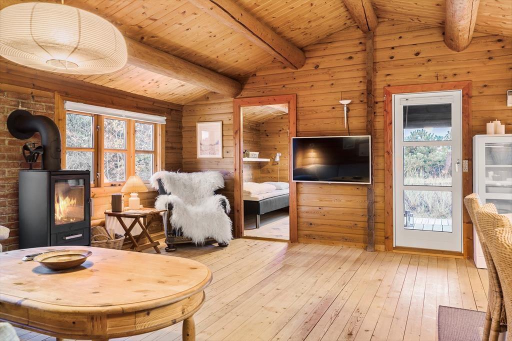 Sommerhusets lyse og venlige indretning skaber straks en behagelig og hjemlig atmosfære, som får dig til at slappe af. Stuen er rummelig og åben med store vinduespartier, der inviterer lyset og naturen indenfor. Her kan hele familien samles til hyggeaftener foran fjernsynet eller en brændeovn, der spreder varme på kølige dage. Det funktionelle køkken giver rig mulighed for at tilberede lækre måltider, mens de komfortable værelser sikrer en god nats søvn. Sommerhuset er indrettet med øje for komfort og funktionalitet, så alle kan nyde deres ophold til fulde.