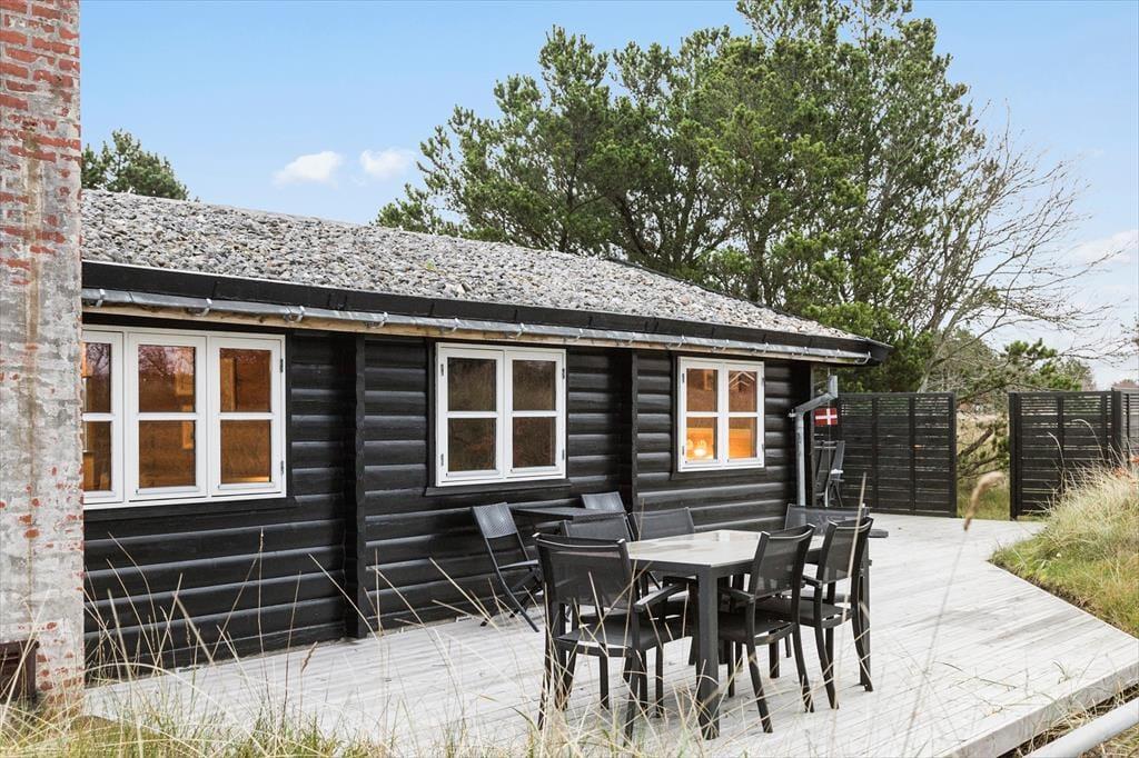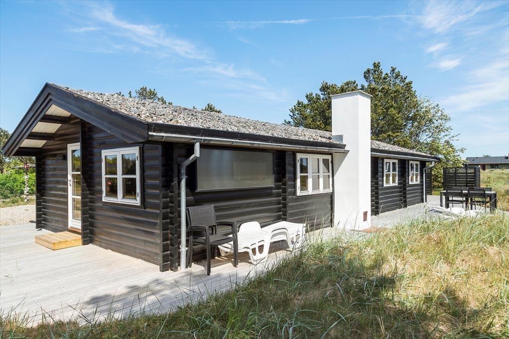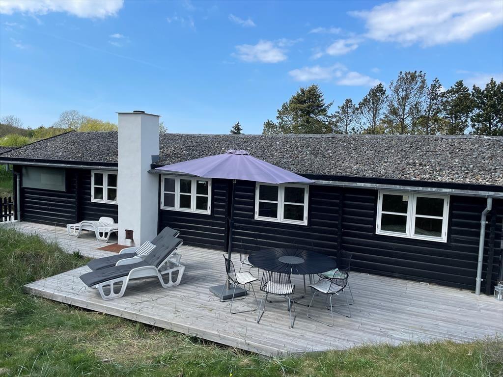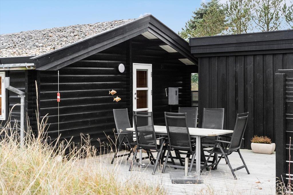 Den store terrasse omkring sommerhuset er som skabt til at nyde de solrige dage og lune aftener. Den overdækkede del af terrassen er ideel til at nyde morgenkaffen eller en grillmiddag, uanset vejret. Med god plads til både afslapning og samvær kan du vælge at læne dig tilbage i havemøblerne eller tage et spil kort i skyggen. De omkringliggende grønne omgivelser giver rig mulighed for leg og aktivitet, mens de fredelige rammer skaber den perfekte baggrund for en afslappet ferie.